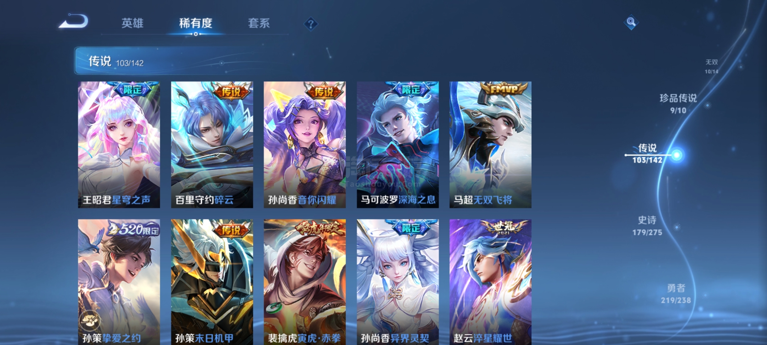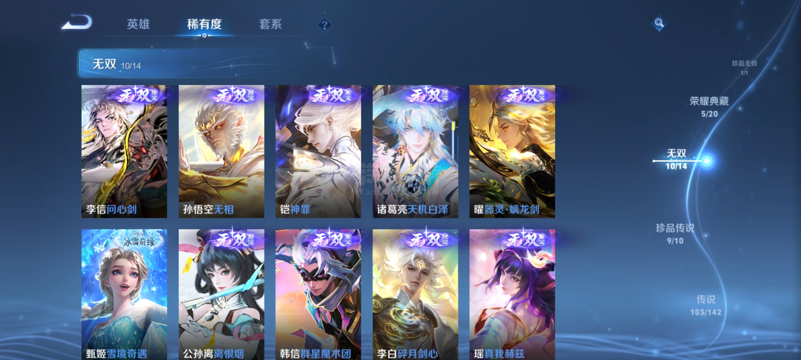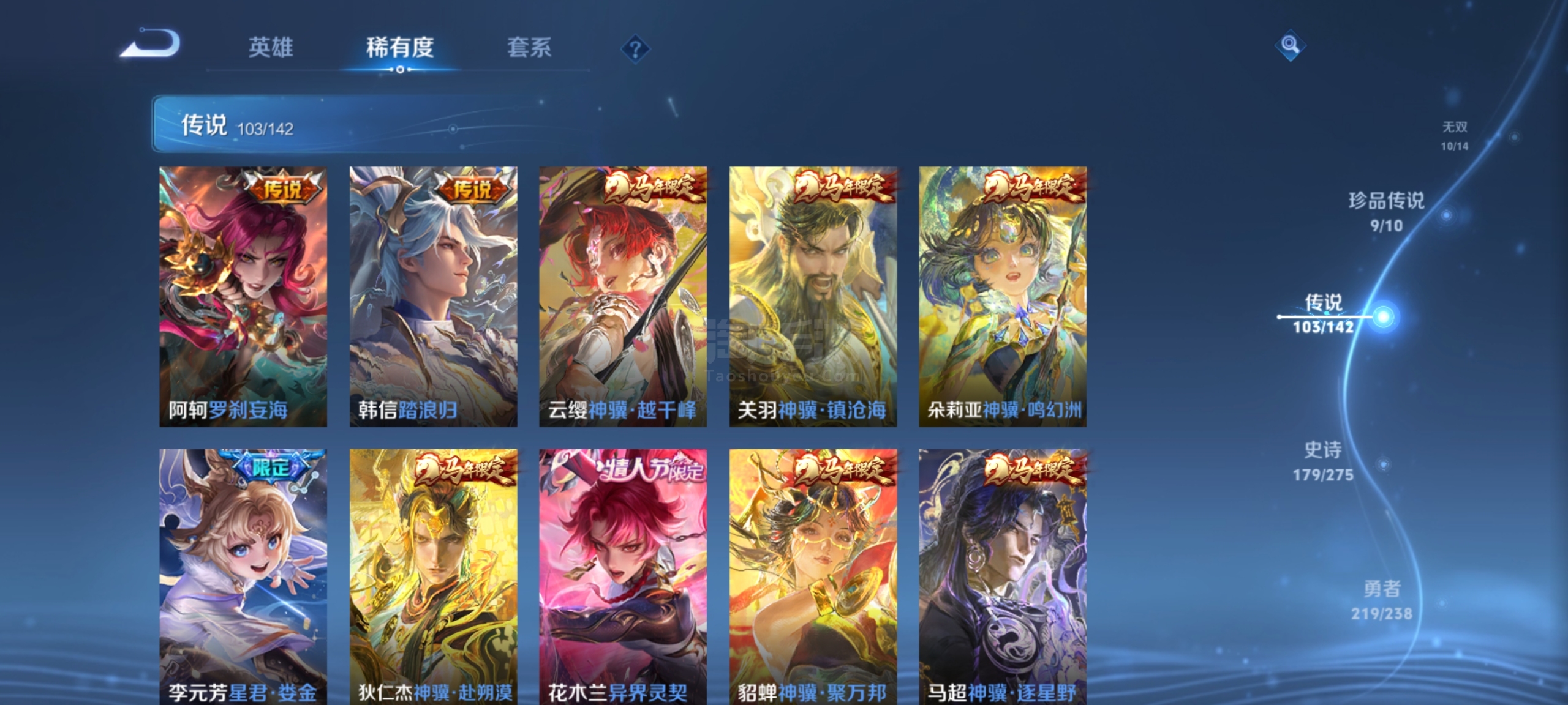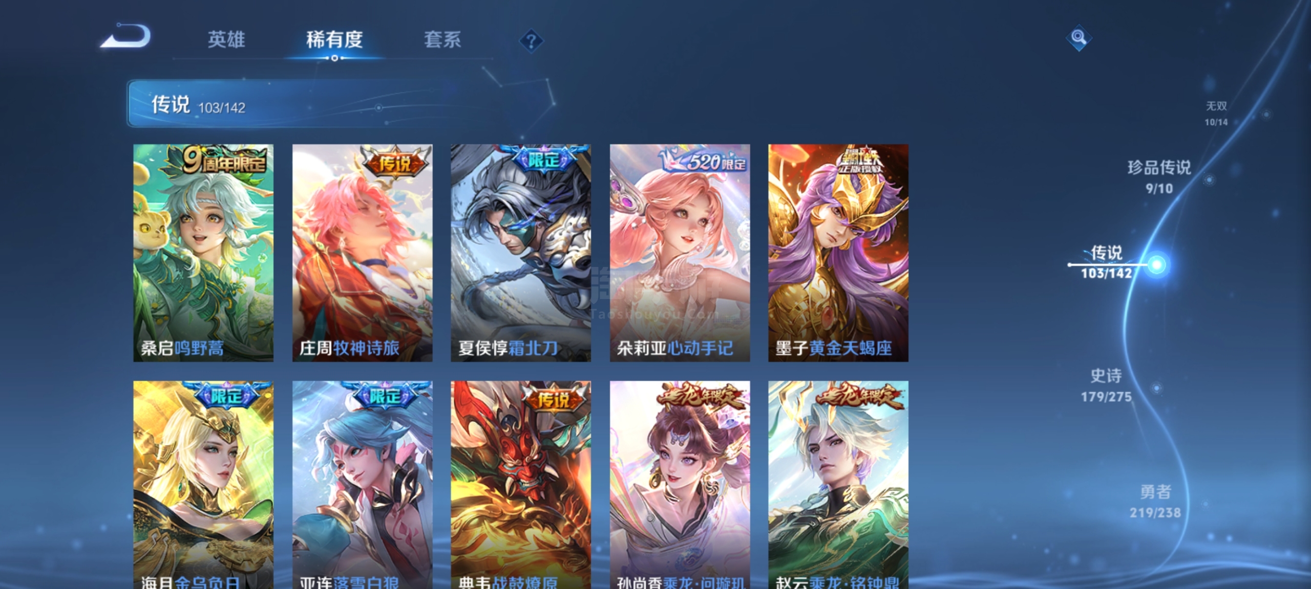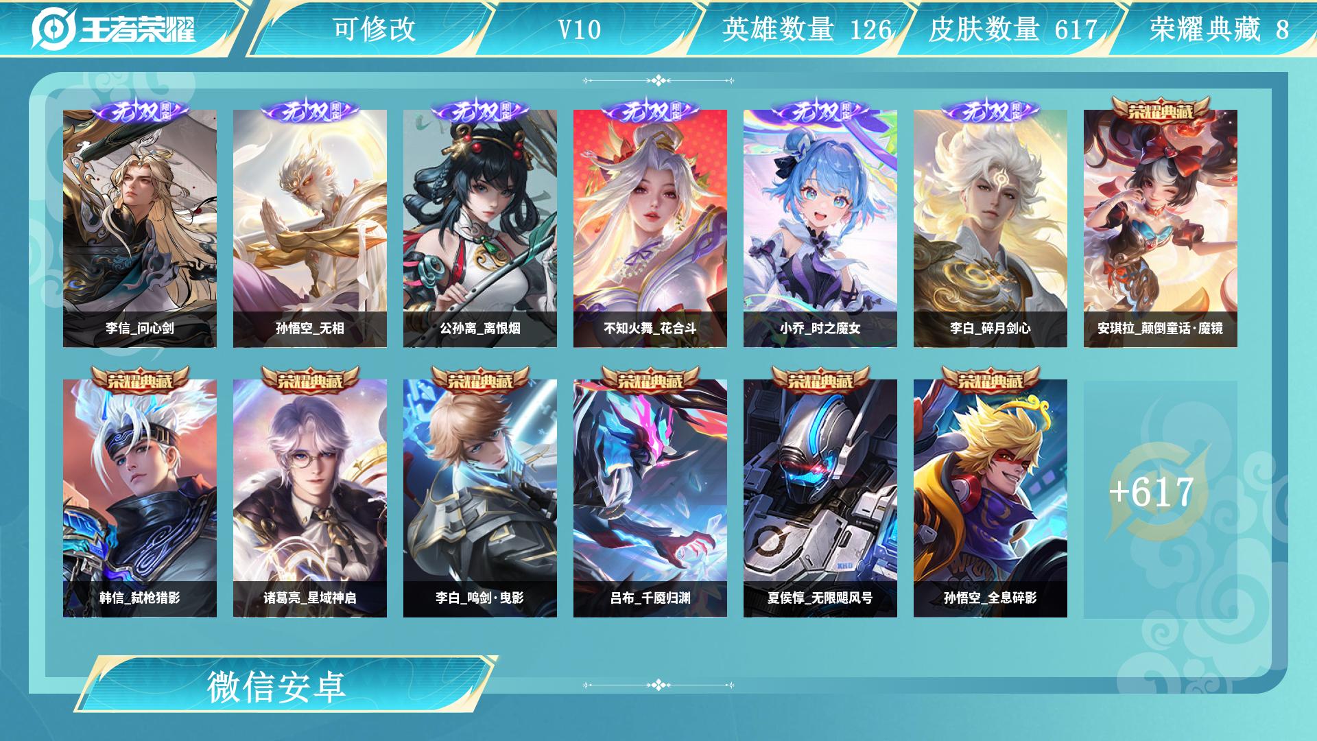 安卓Q可二次-无双v10-608皮-5典藏 10无双 9珍品传说 103传说 15星传说 一堆新皮肤