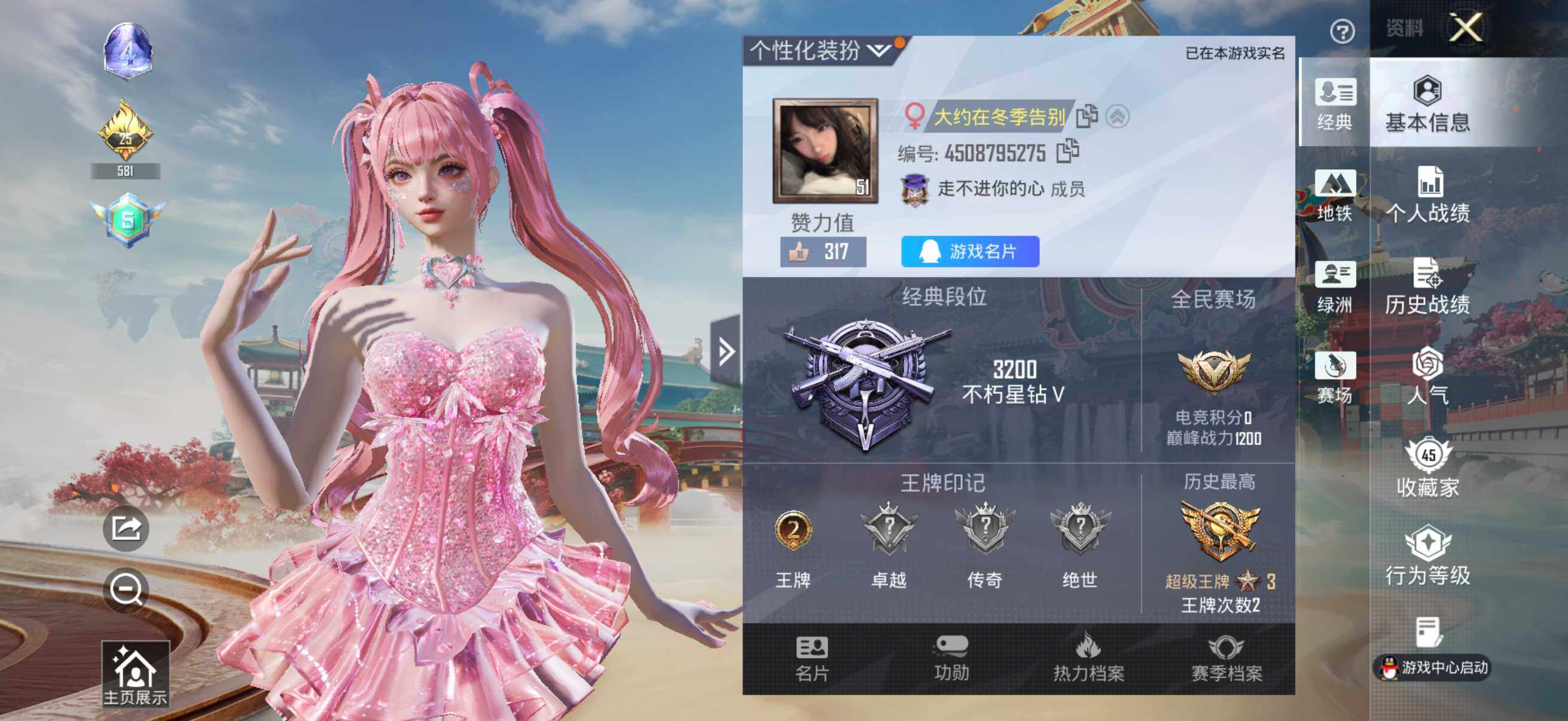 【AZH3425】苹果 手Q【第五大道 小鸟芋圆 美羊羊】4粉装-5特效枪-0载具-1粉色飞行器-33861热力值-2王牌印记-76套装-132枪皮