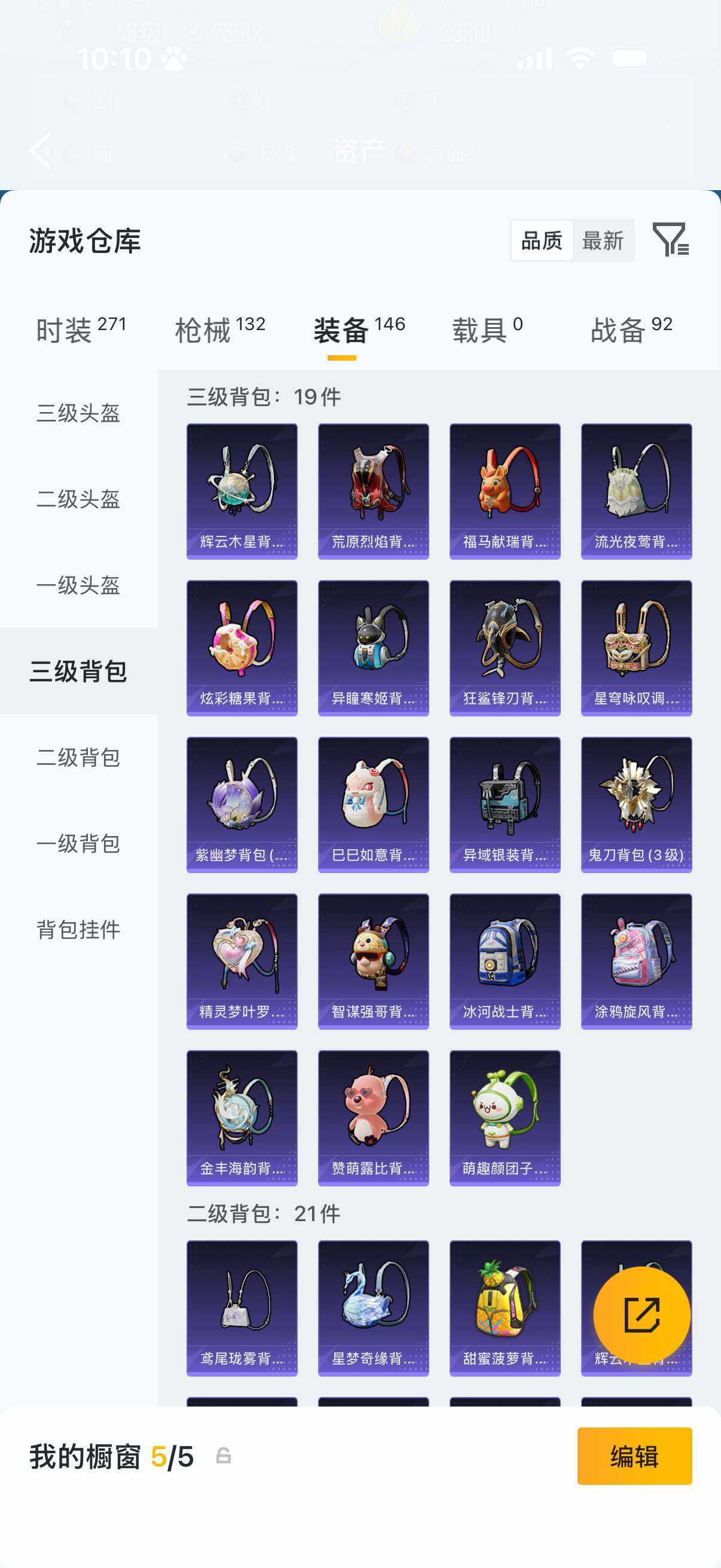 【粉色枪皮等级】:AUG-暖羊咩咩(五级),UMP45-萌骑冒险(五级),Kar98K-巳巳如意(五级),Mk14-福马献瑞(一级),DP-28-豹影疾电(一级)