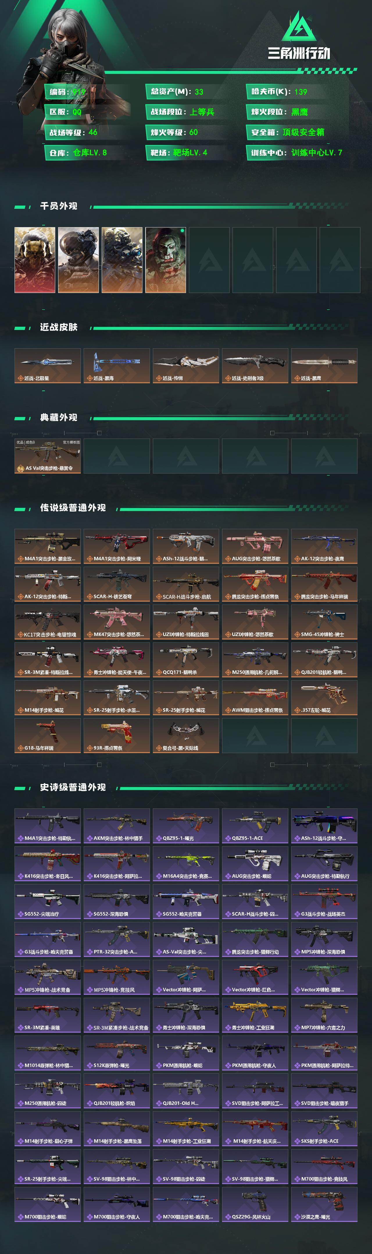 33m总资产139k哈夫币蚀金玫瑰【干员外观】:红狼-蚀金玫瑰,威龙-壮志凌