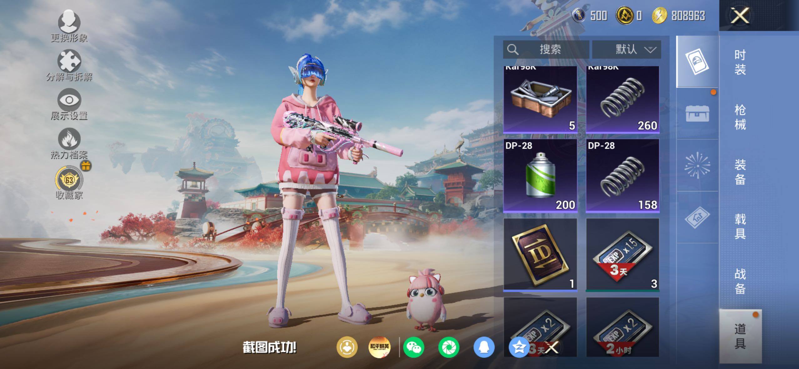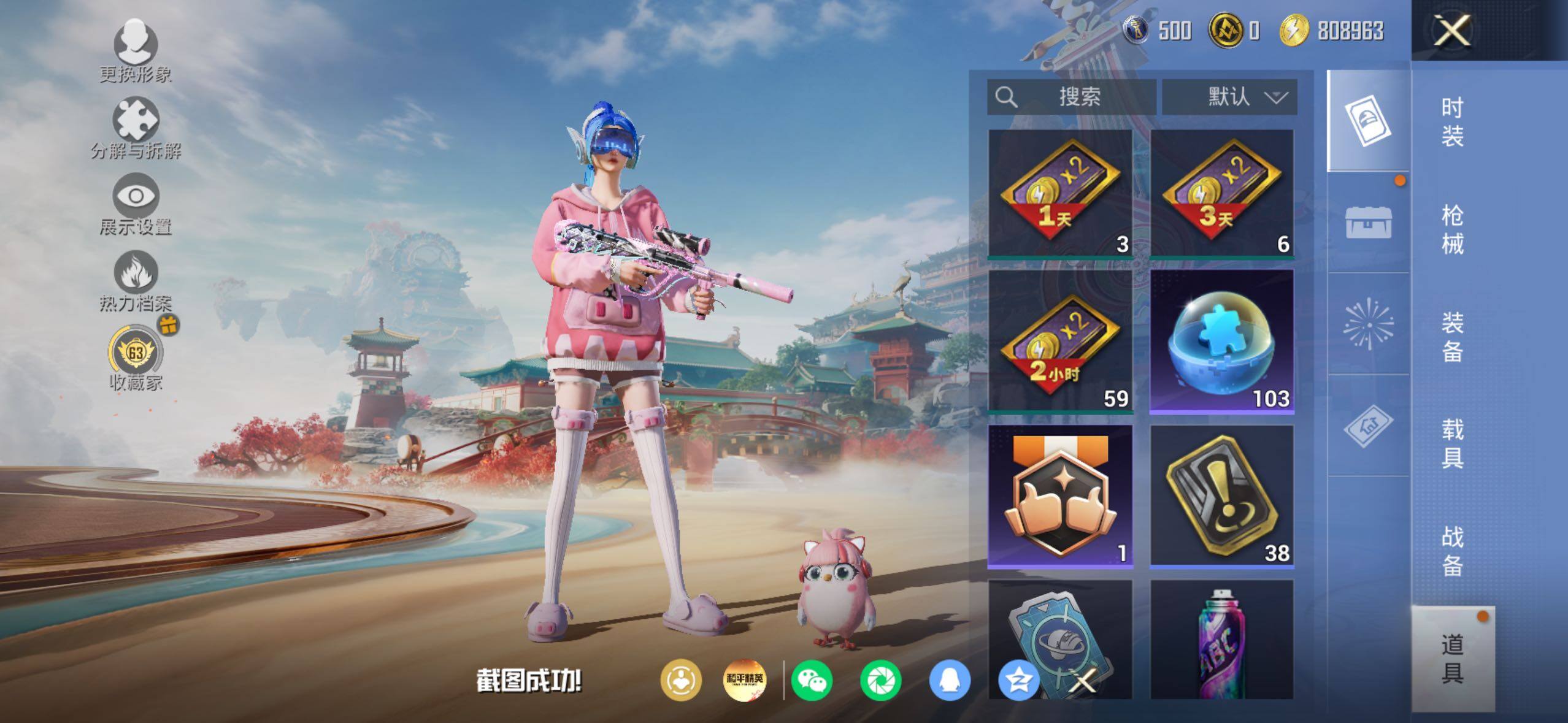 苹果 手Q-6粉装-4特效枪-0载具-3粉色飞行器-70567热力值-10王牌印记-158套装-216枪皮