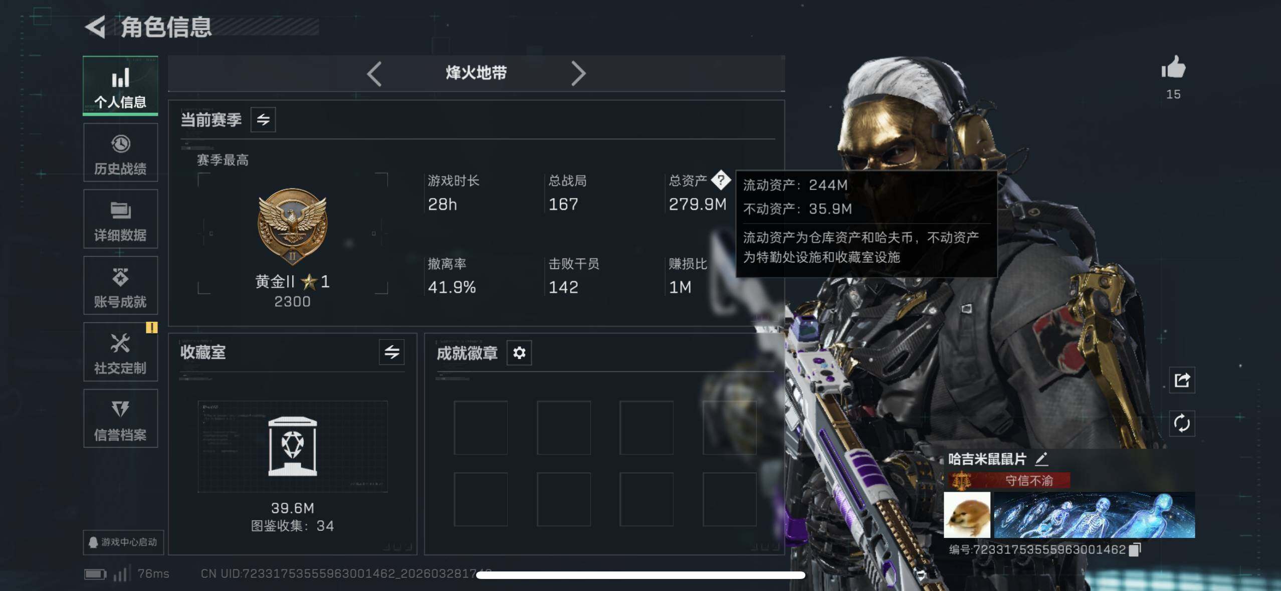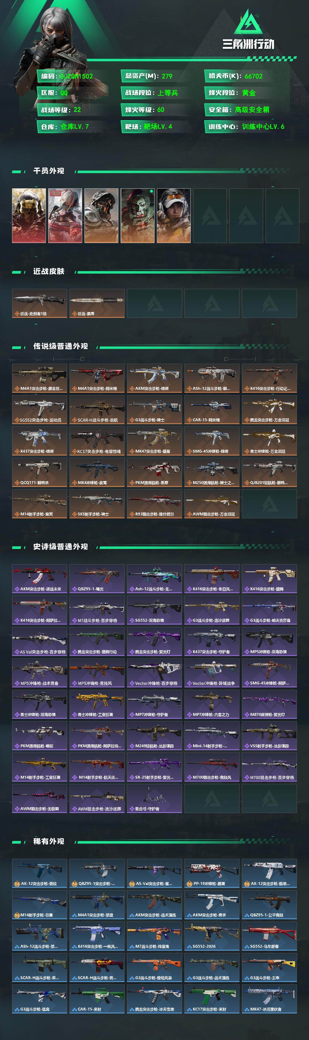 279m总资产-66702k哈夫币-60烽火等级-黄金-22战场等级-上等兵