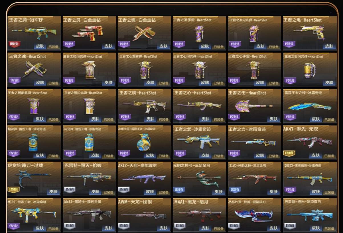 【安卓QQ】 角色等级:巅峰大元首 【角色】关小雨、乔月、瞳、职场灵狐-赛事经理、萝拉、零-新生、步练师、月神-X、炽天使-X、祝融夫人 【武器】王者幻神、王者之力、王者之影、王者之武、王者之心、王者之魄、王者之腾、QBZ03-王者蔷薇、M12S-雷霆王者、王者之业、王者之魂、COP 357-雷霆王者、雷霆王者之锋、AK47-奉先、M4A1-星象、MK47-仁德、KSG-孟获、蟒蛇-奉先、CZ75-策、柯尔特-仲达、USP-仁德、双持GLOCK18-本初、气勇胆烈戟、思召剑、M200-幻神、AW