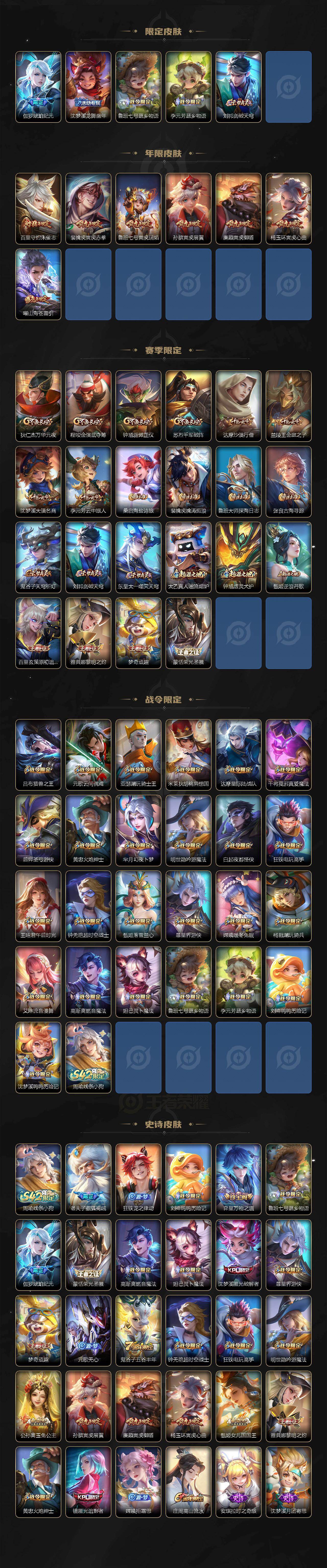 贵族8/皮肤281/典藏3/传说21/史诗81/英雄128/