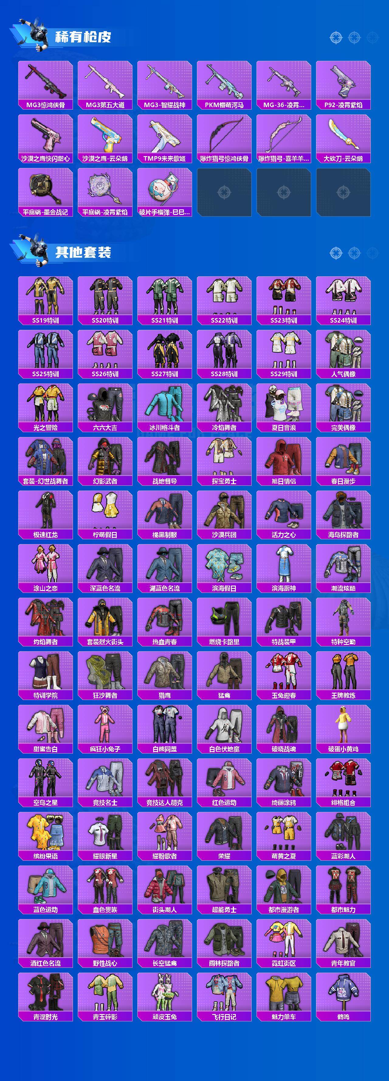 【热门品类】:粉装-缤纷油彩,套装-都市猎人,套装-小丑鱼,套装-暗夜之虎,套装-龟仙人,角色-Mark.06