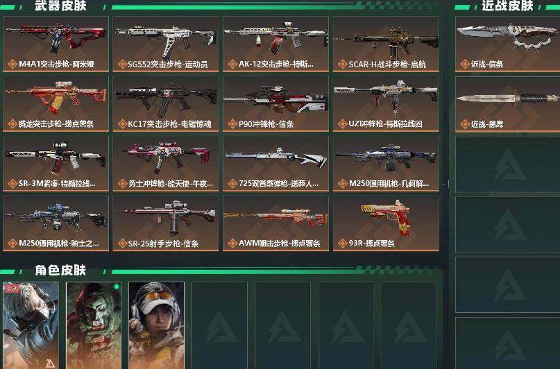 【传说外观】:M4A1突击步枪-阿米娅,SG552突击步枪-运动员,AK-12突击步枪-特斯拉线圈,SCAR-H战斗步枪-启航,腾龙突击步枪-捞点薯条,KC17突击步枪-电锯惊魂,P90冲锋枪-信条,UZ