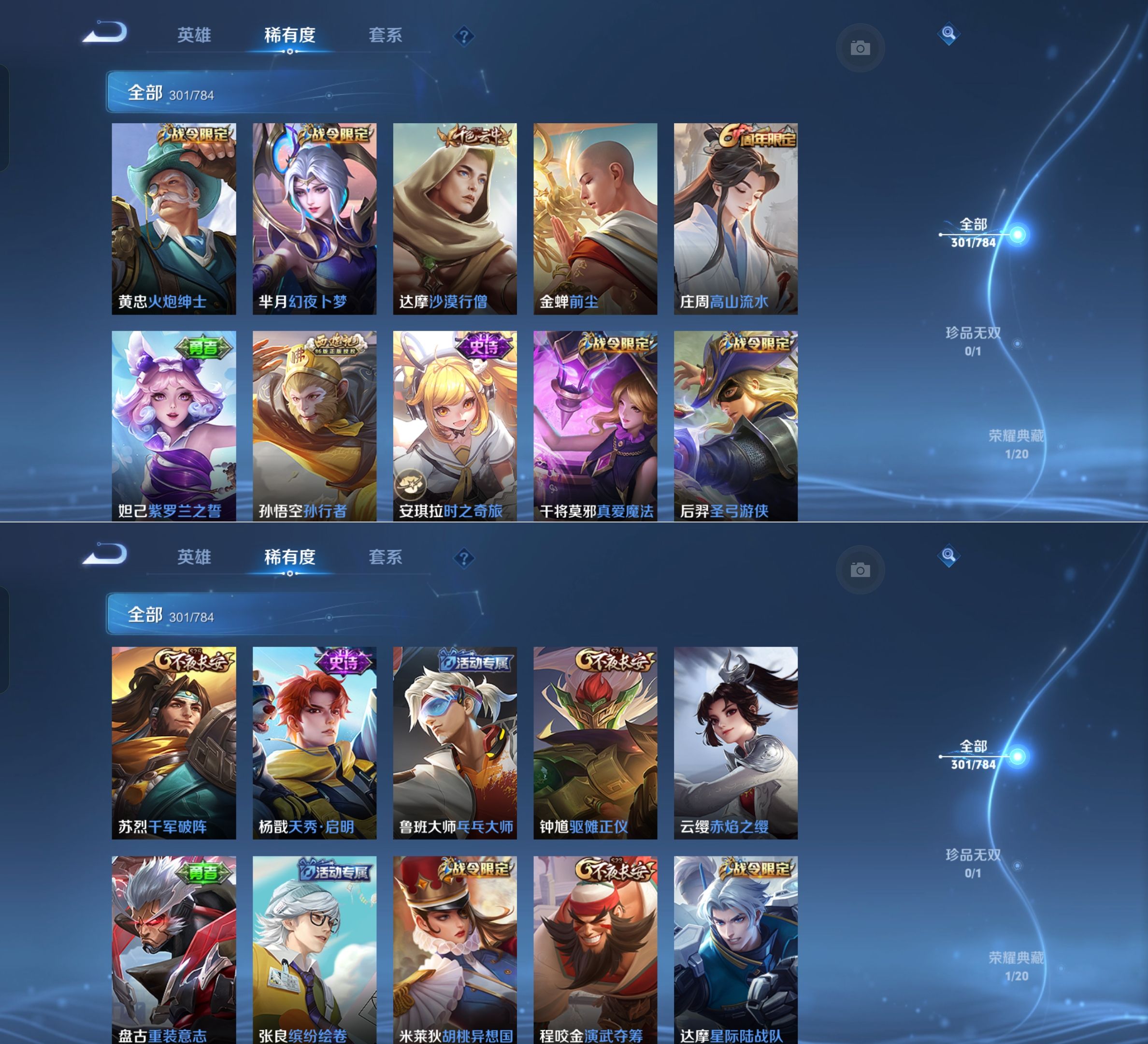 302皮肤V8 典藏1 1无双 传说14 凤求凰 星传说2 未来机甲 星际治安官对抗路22段打野22段发育路21段