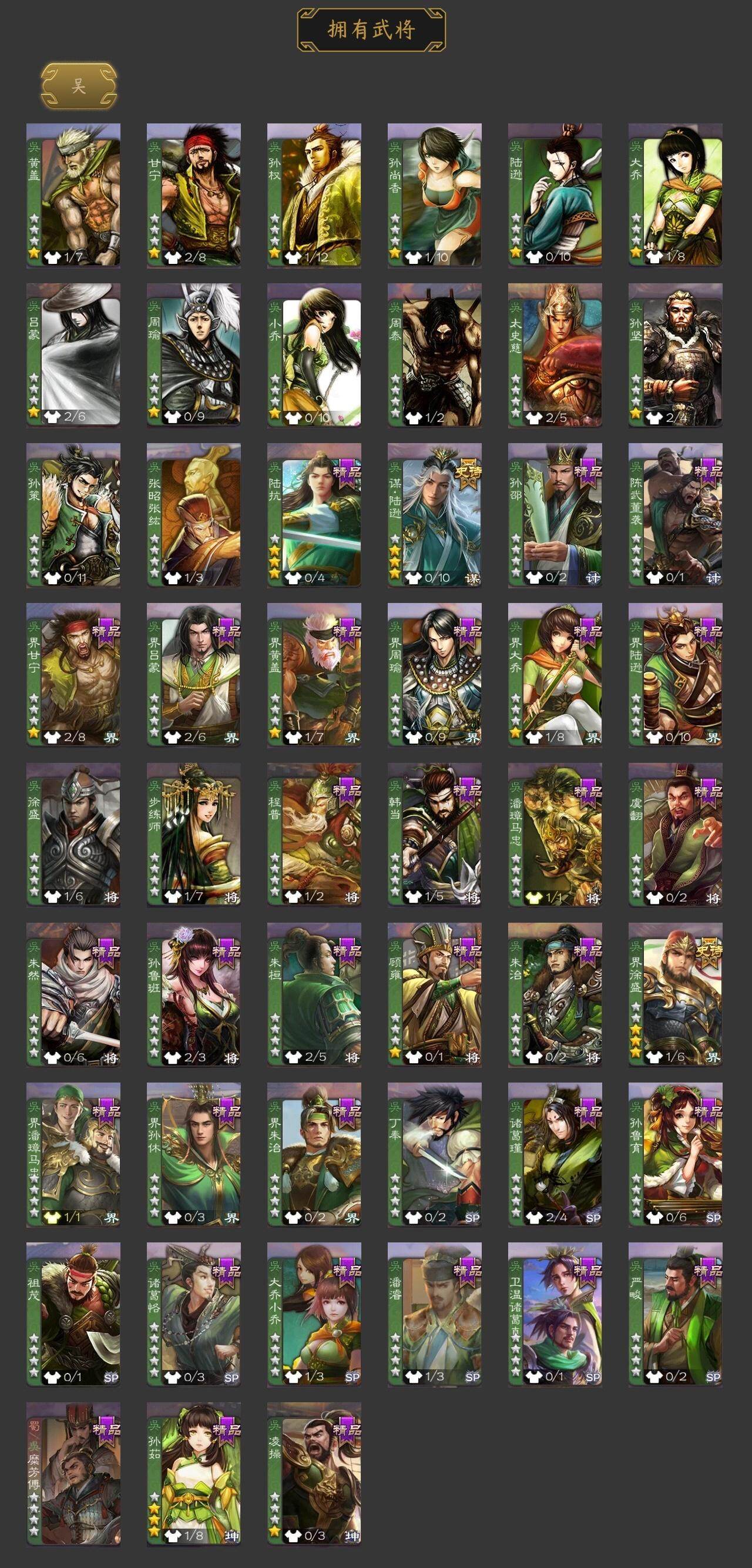 王元姬,曹婴,曹纯,程昱,谋马超,谯周,谋陆逊,界徐盛,左慈,SP关羽,SP曹仁,SP蔡文姬,乐进,曹昂,诸葛诞,朱灵,文聘,SP姜维,钟会,曹冲,郭淮,满宠,界王异,界曹操,界司马懿,界