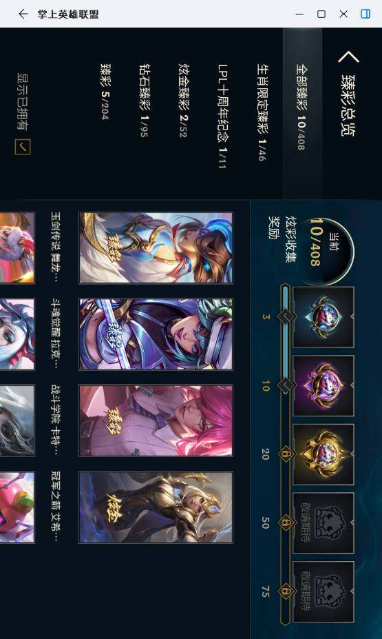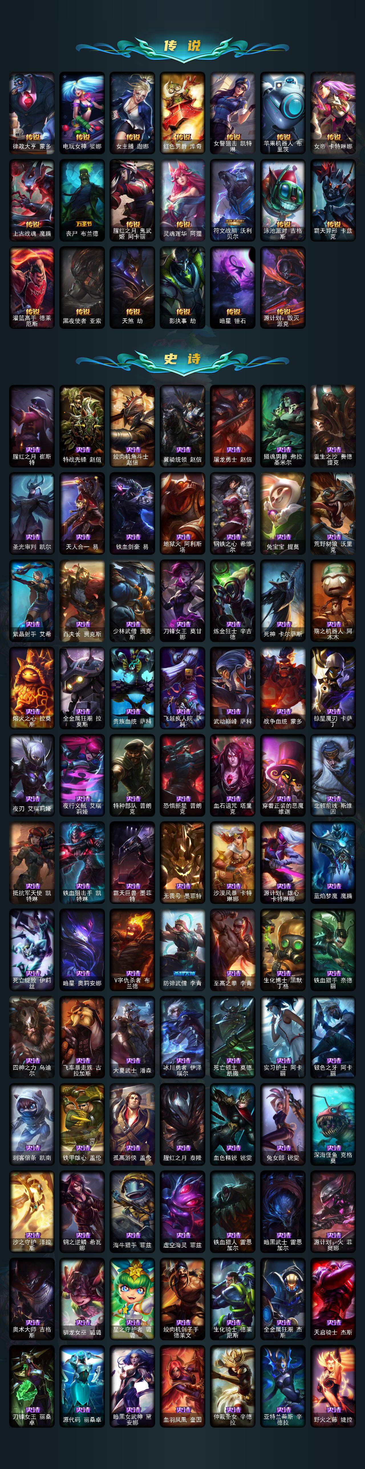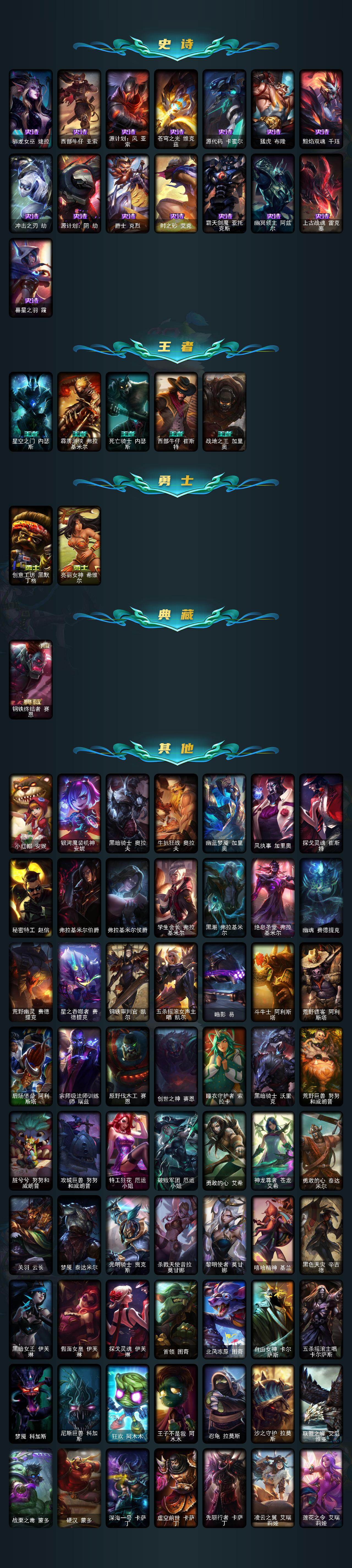 未定级段位-172英雄-401皮肤-165炫彩-2终极-8神话-52限定-34传说-99史诗