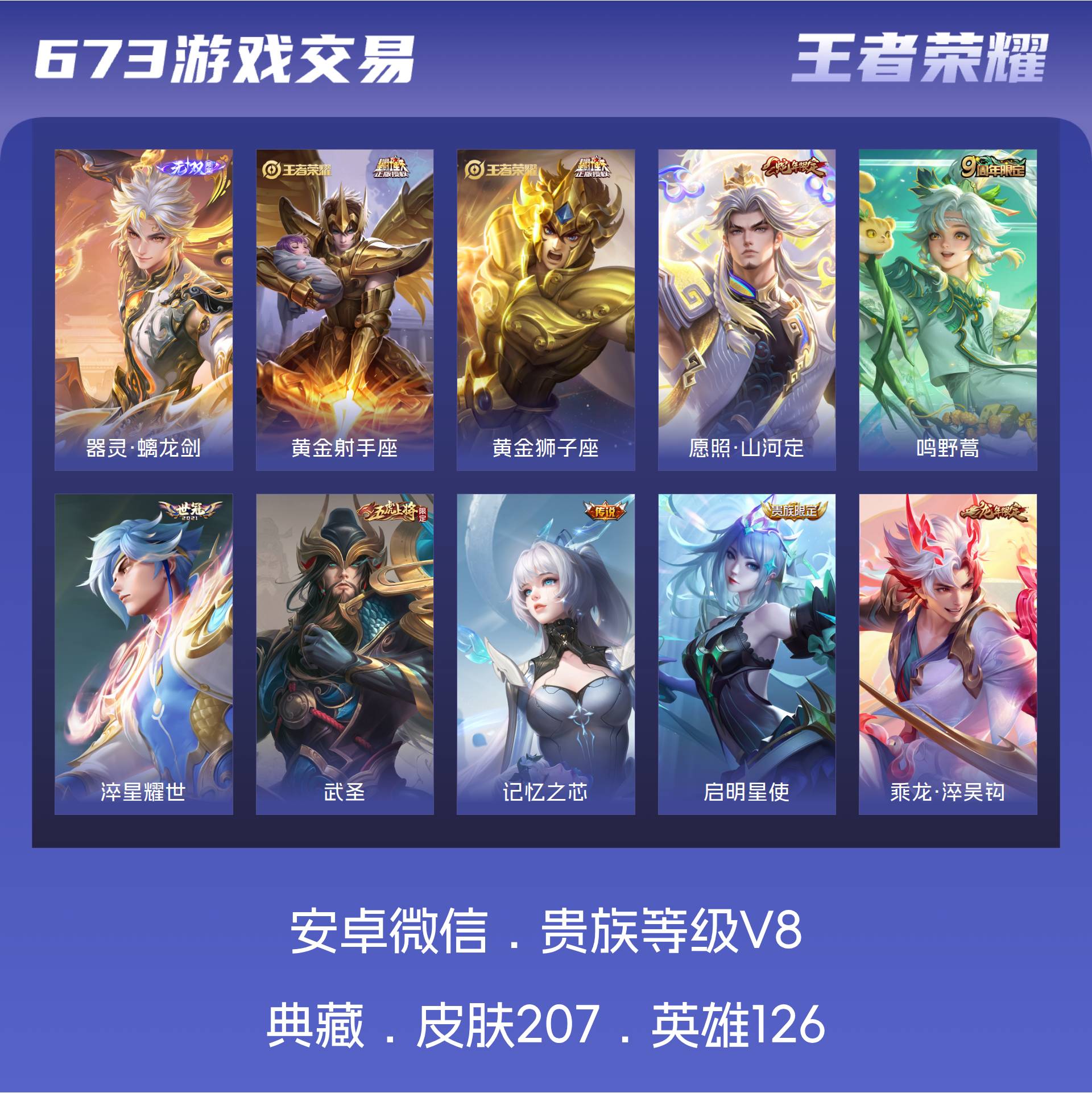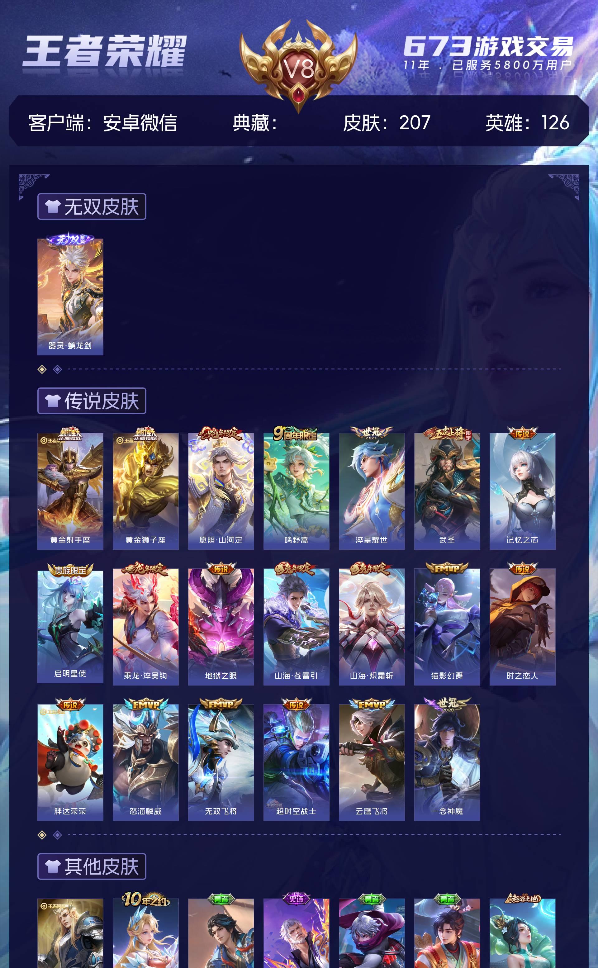 V8 皮肤207 英雄126 尊贵铂金 无双皮肤1 传说20