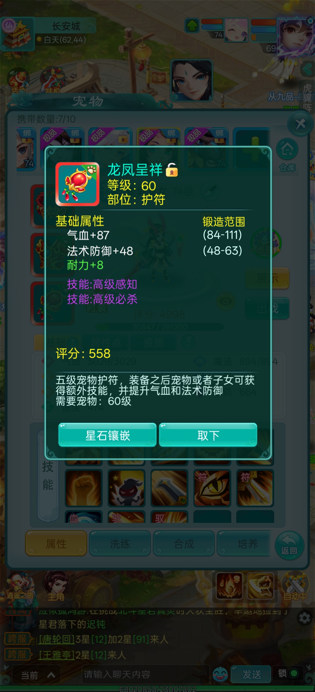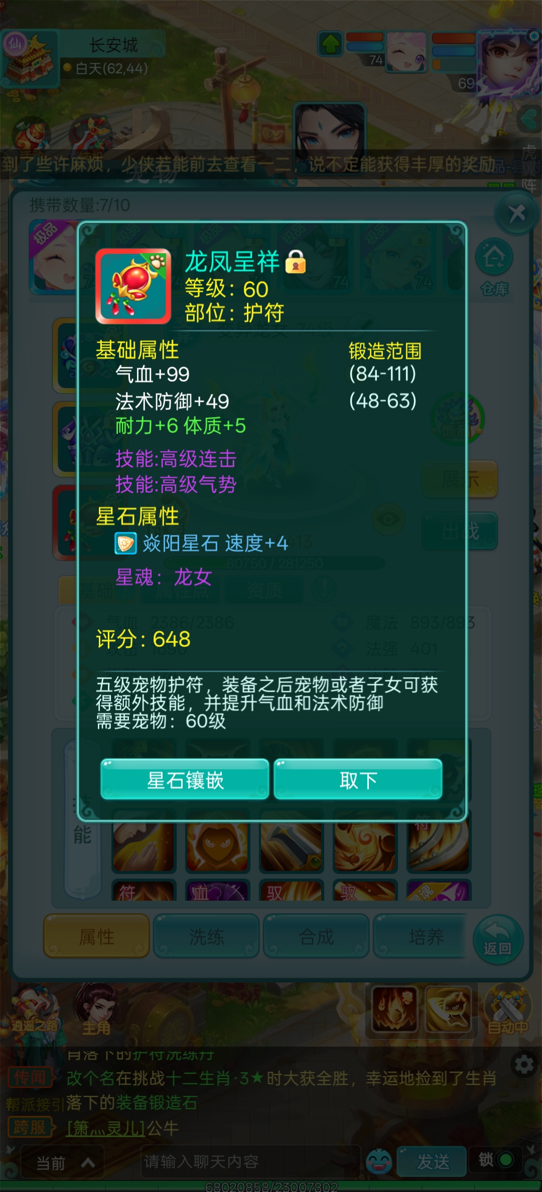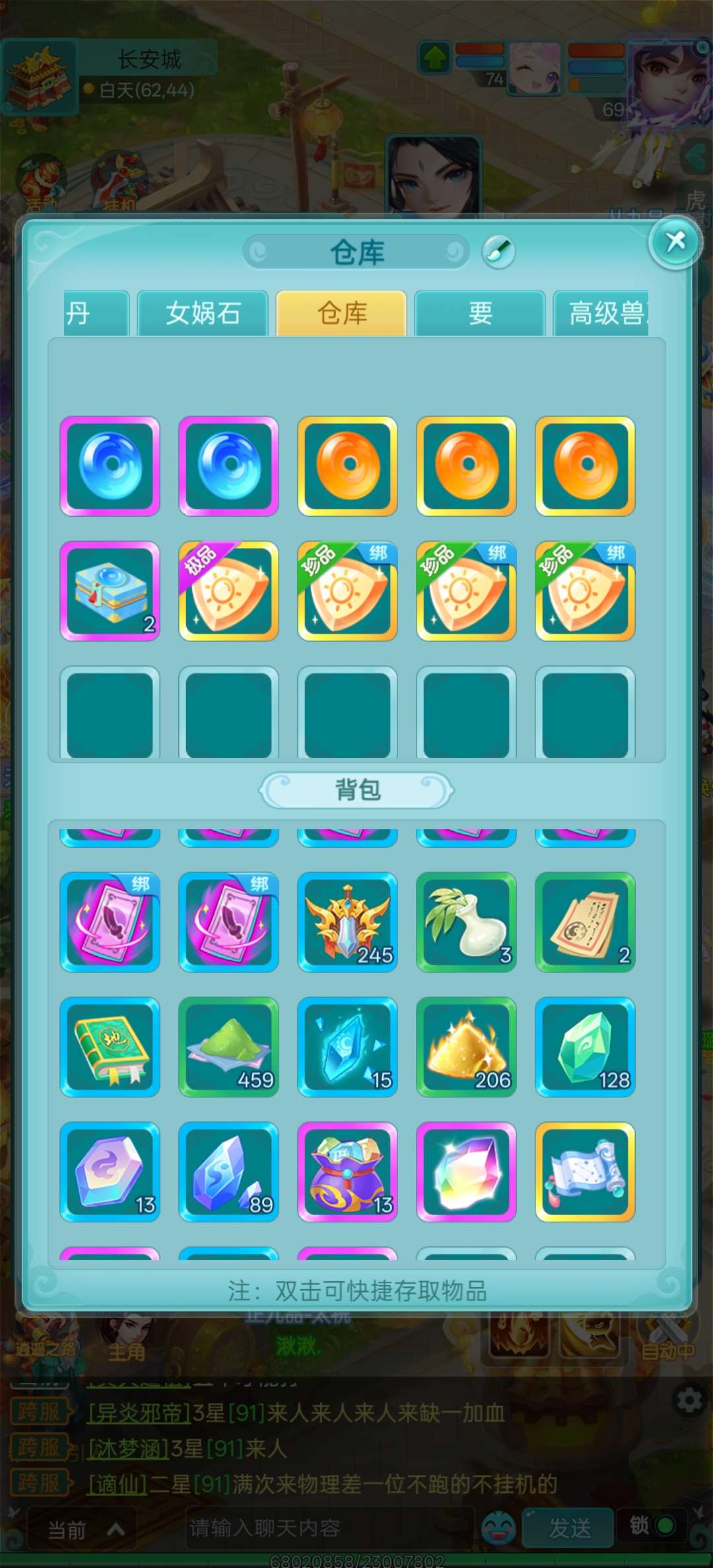 抖音区人数最多的大火区逍遥游区,高攻击天策,神力四套装满,极品玉符,全身简易,高攻击武器,全满号。