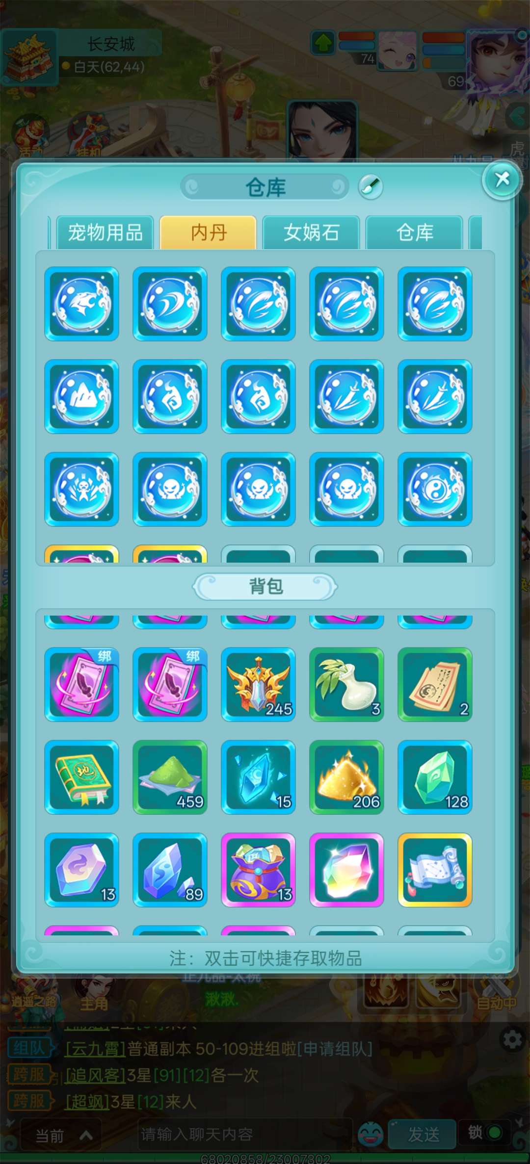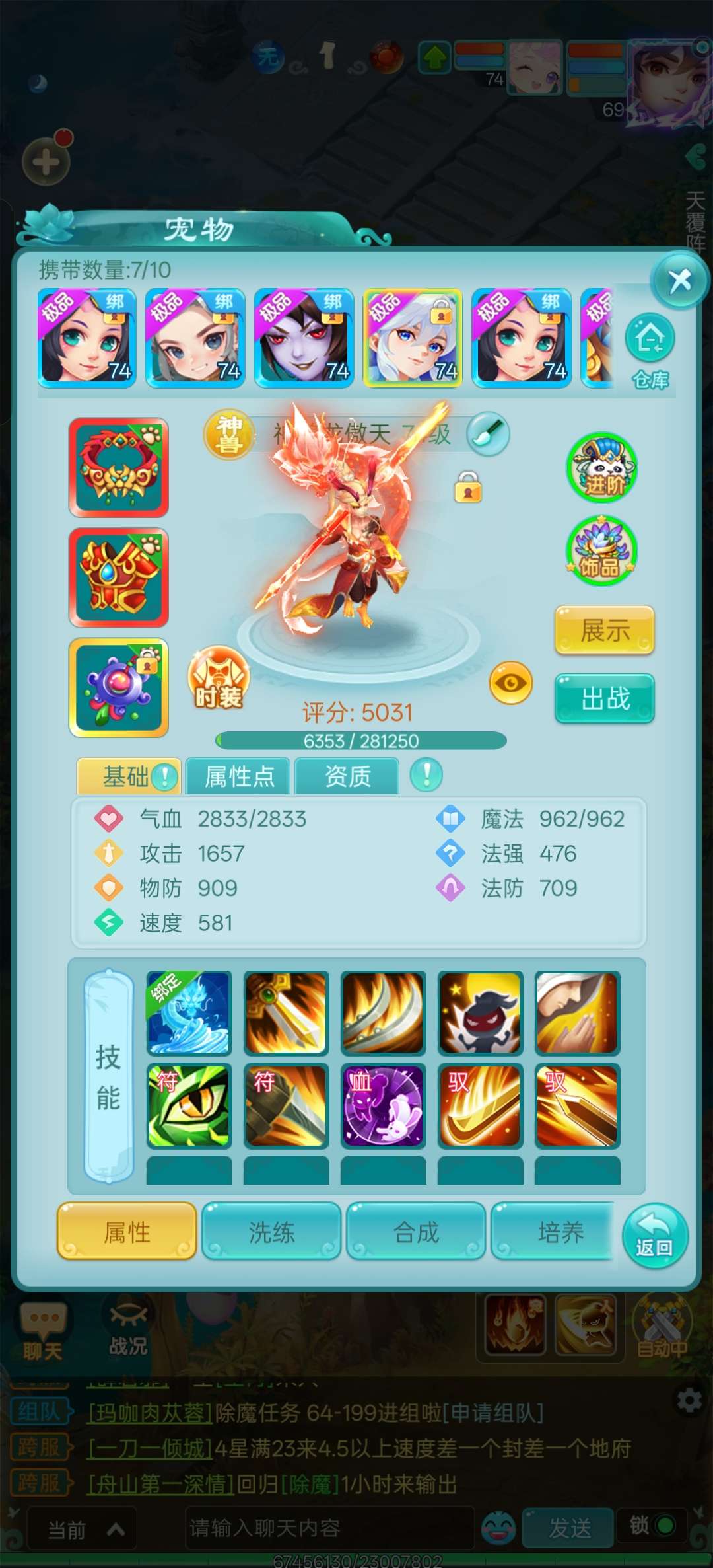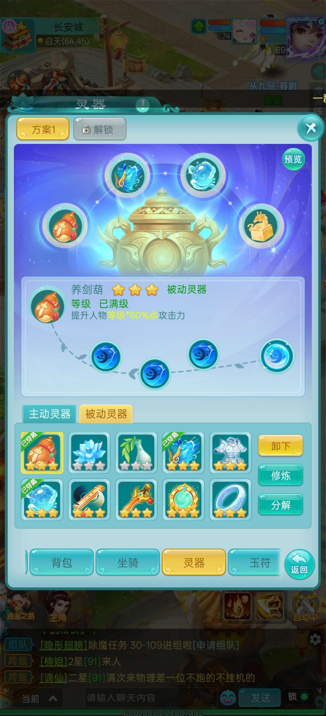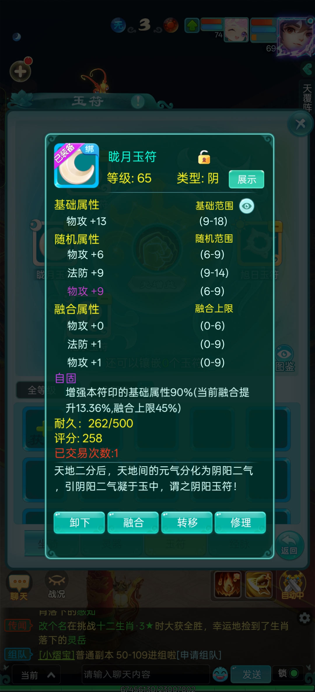 抖音区人数最多的大火区逍遥游区,高攻击天策,神力四套装满,极品玉符,全身简易,高攻击武器,全满号。