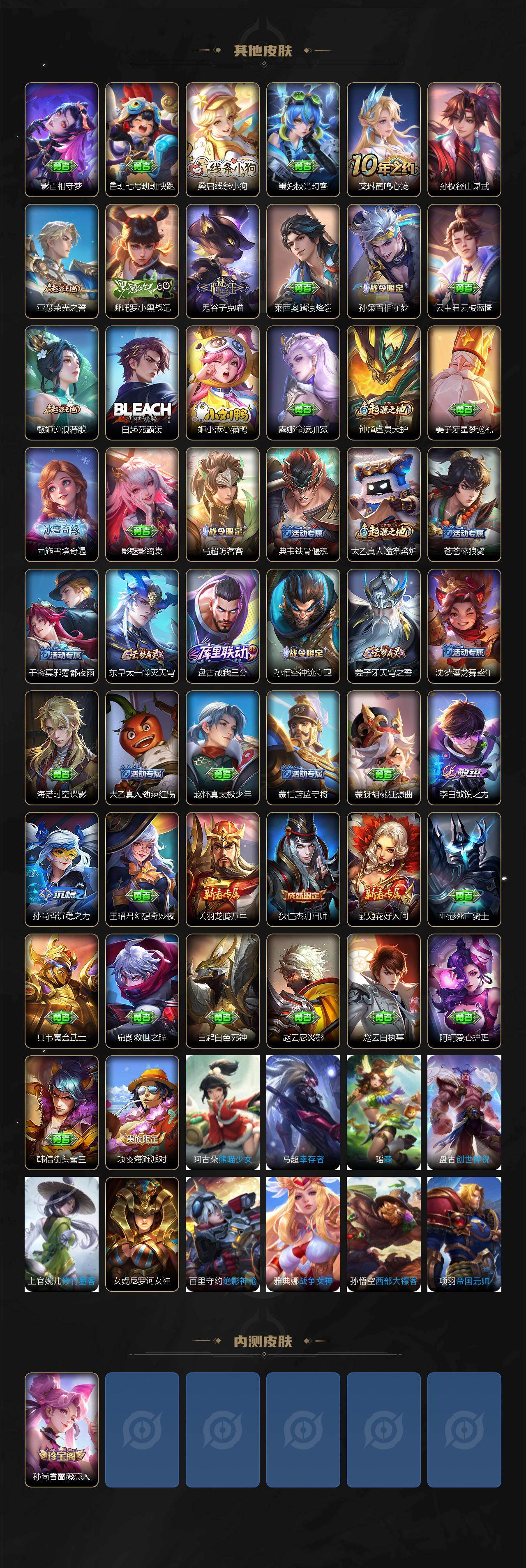 【传说皮肤】:貂蝉神骥聚万邦,后羿神树通天,澜愿照九州拓,桑启鸣野蒿,铠绛天战甲,花木兰冠军飞将