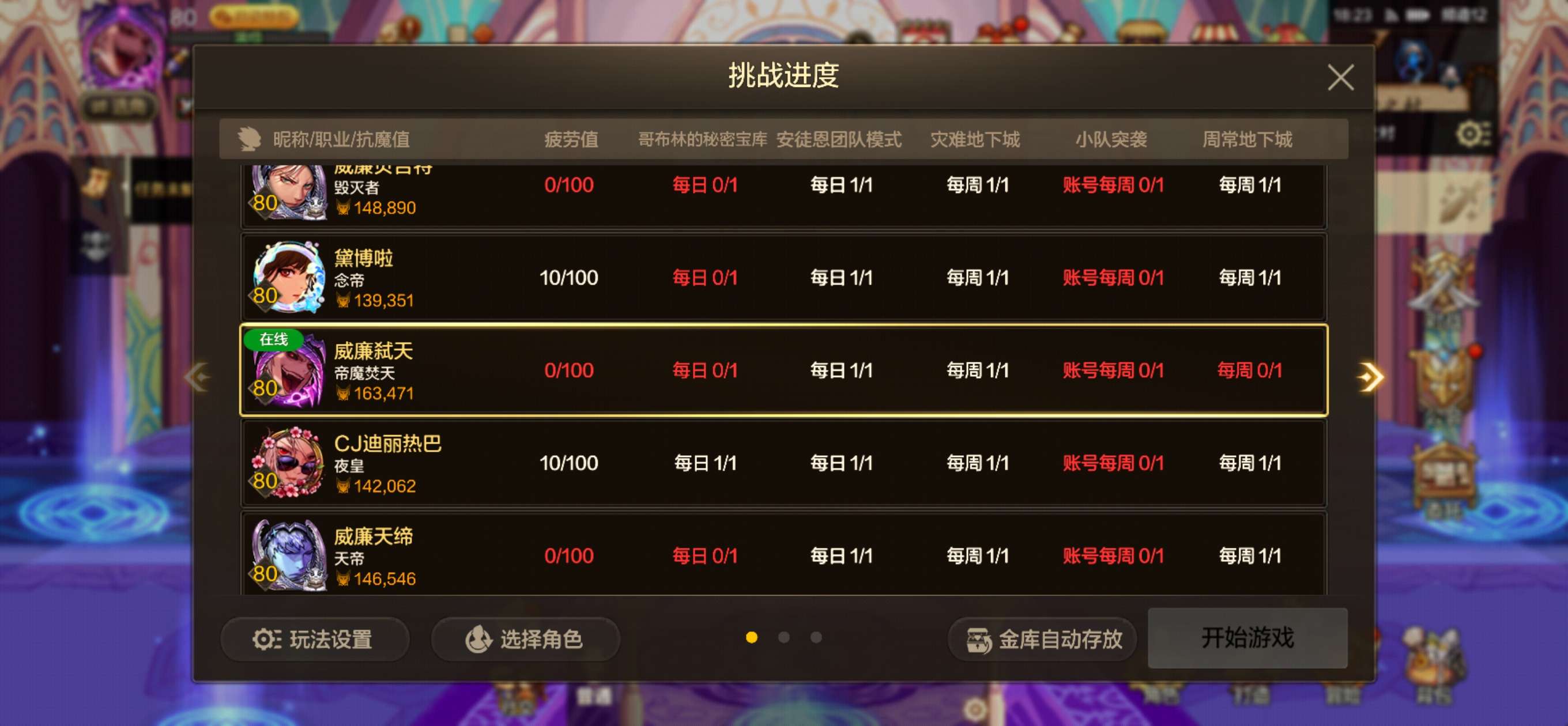 DNF手游成品号,20个80级角色,主C帝魔焚天16万抗魔,物理攻击35W+,累充6.7W,价格可议