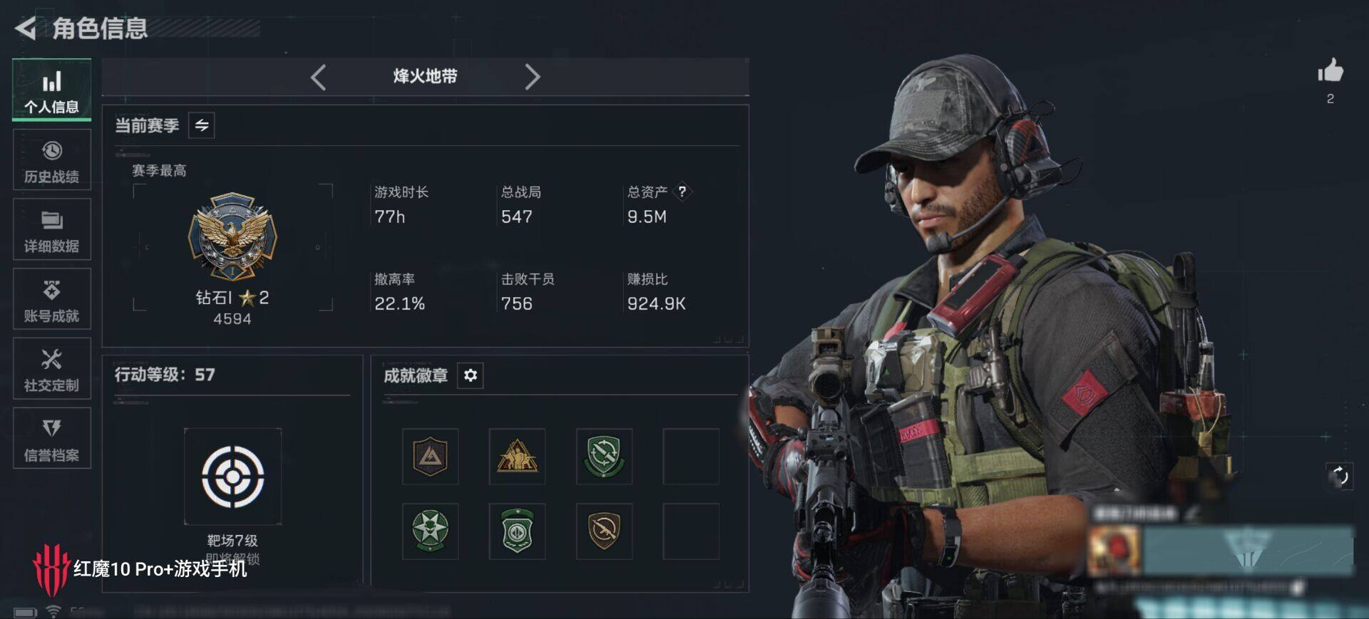 9m总资产-1093k哈夫币-57烽火等级-钻石-1战场等级-无军衔