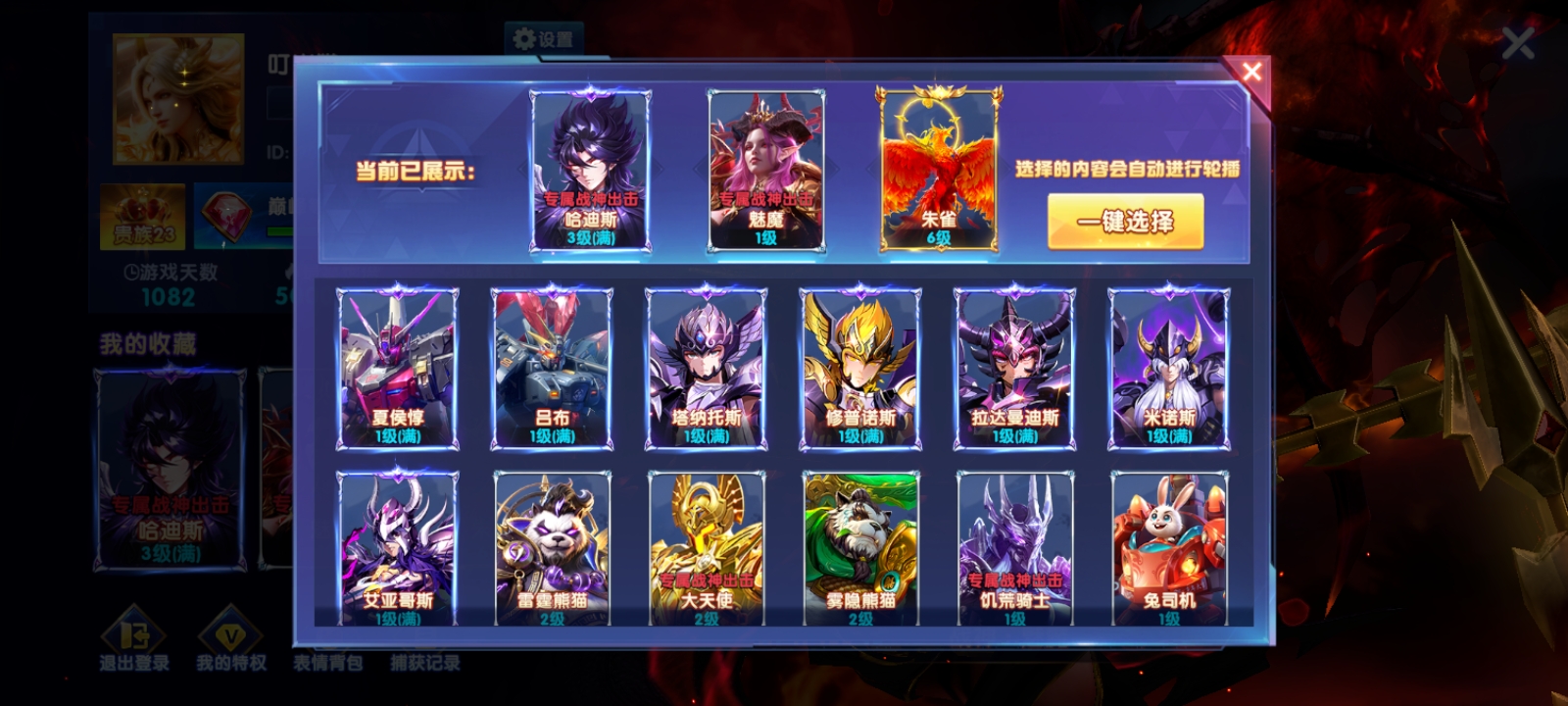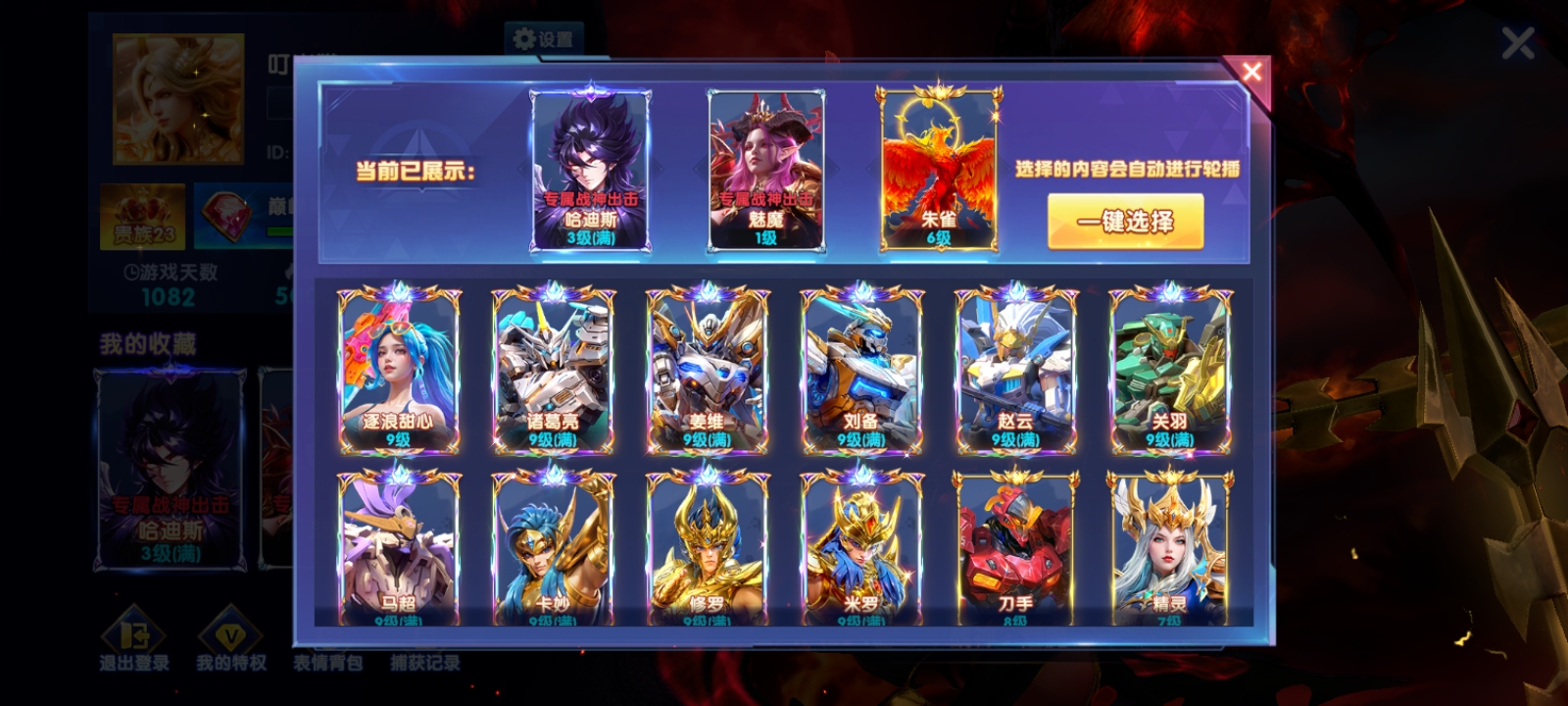 华为v23 特权11 冥斗士全满 15套 加成自己看 一手号。 基本全部活动满 救济3兆