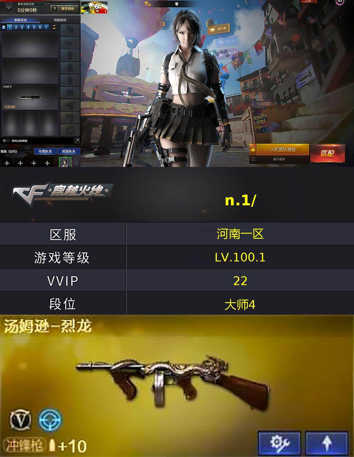河南一区-25V-2王者武器数-0炫金武器数【热门武器】:汤姆逊-烈龙,沙鹰-修罗【王者炫金武器】:超新星-悦享【皮肤】:火麒麟-雷神,毁灭-暗月,毁灭-英雄计划 皮肤,黑龙-能量核心,无影-暗月,死神-秘银,天启-暗月,战神-粉色甜心皮肤,战神-紫绶金章皮肤,战神-流金岁月皮肤【角色】:零,风暴女,兰-海滩派对,潘多拉-X,潘多拉-甜心教官,潜龙队-X,青霞仙子,斯沃特-X,雪莉杨-摸金校尉,影武者-X【人偶武器】:闪光弹-小乔【挑战大师】:激光毁灭者III-白马银枪*2【英雄级武器】:M4A