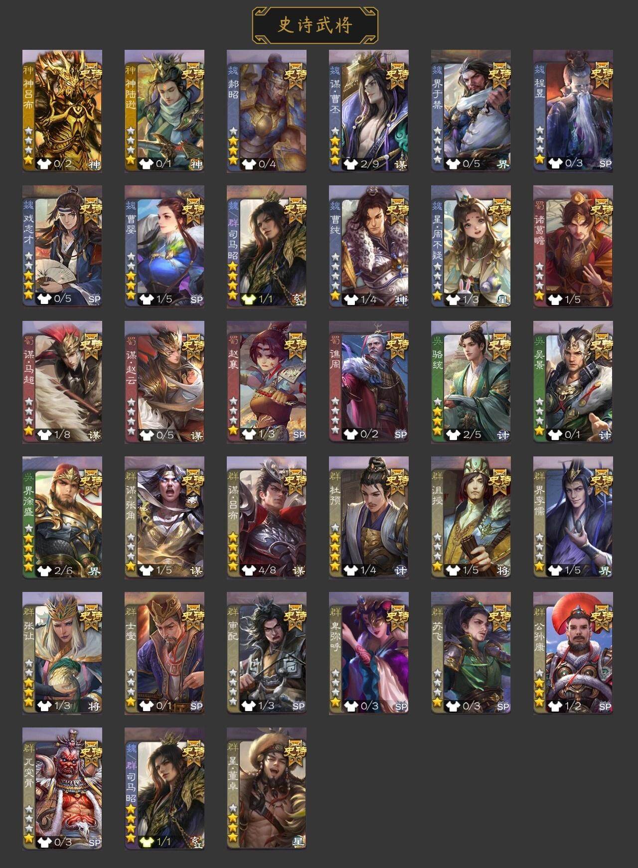史诗武将数量: