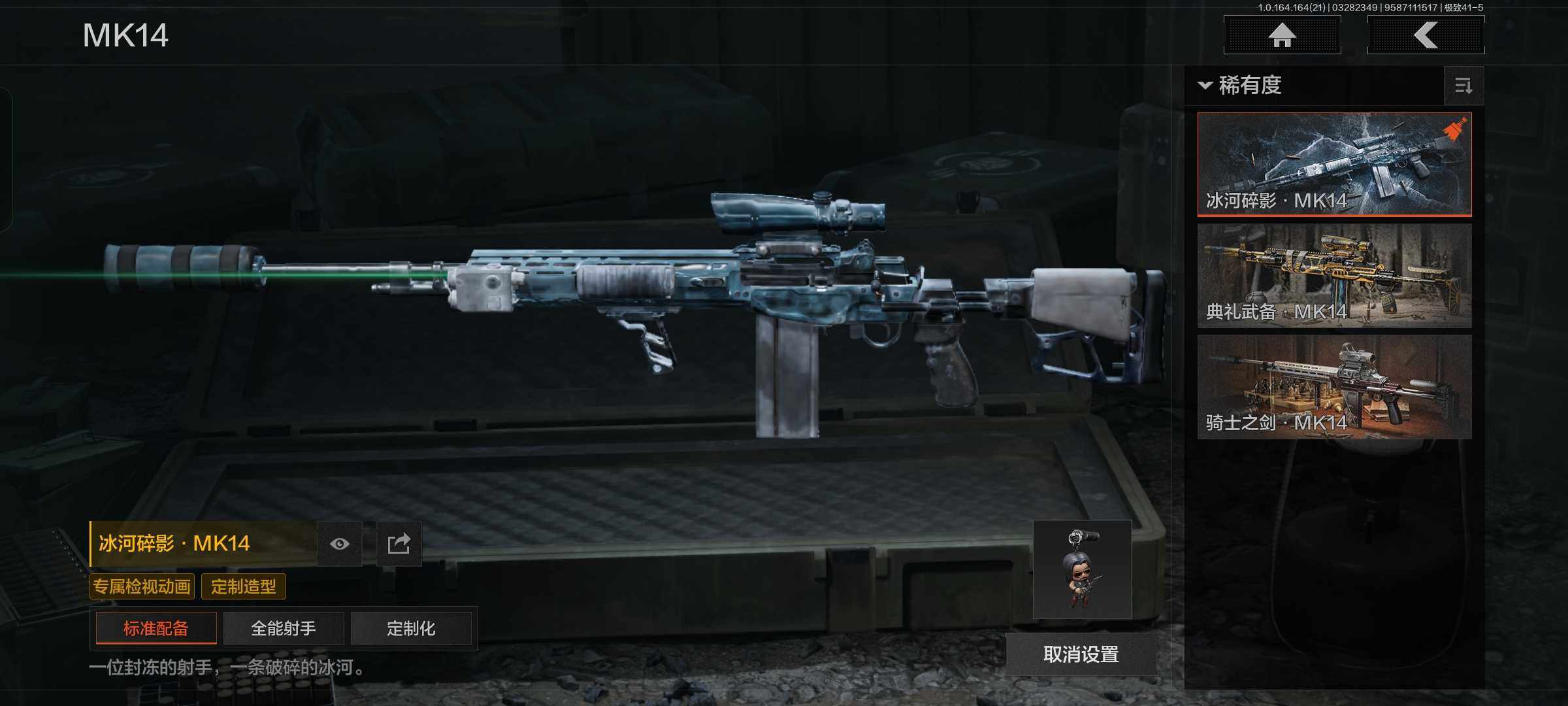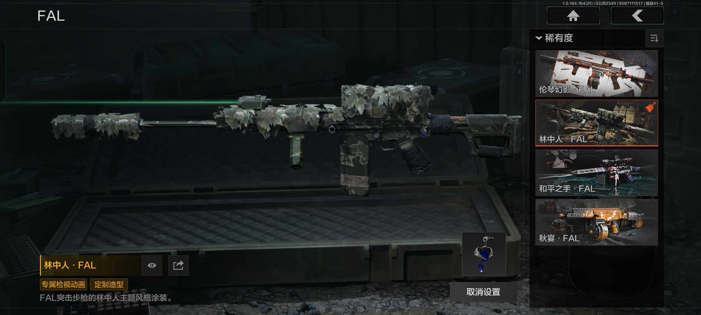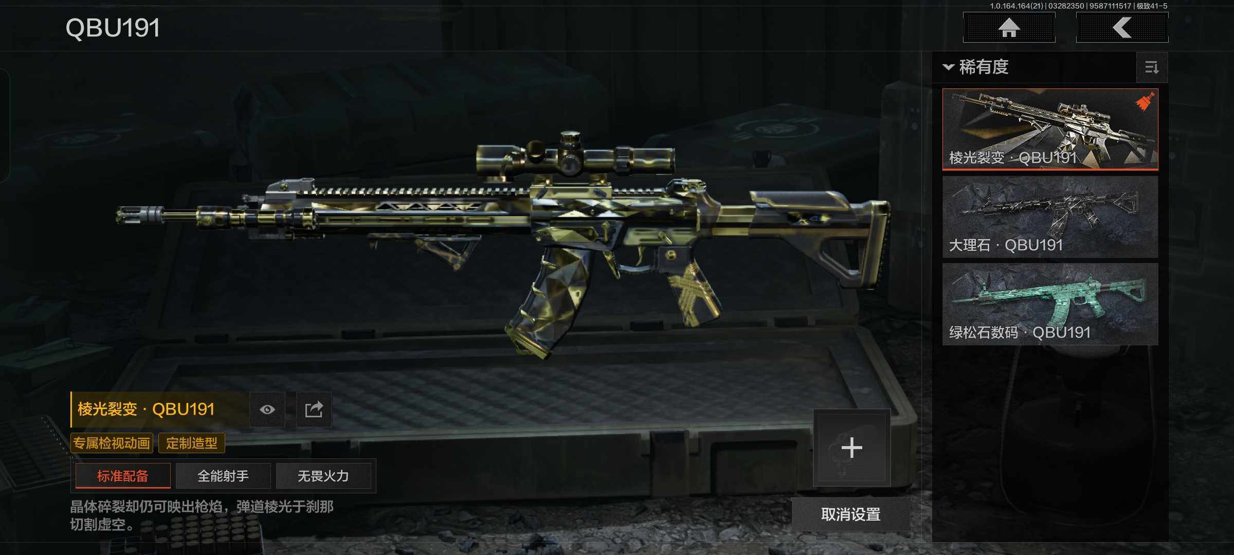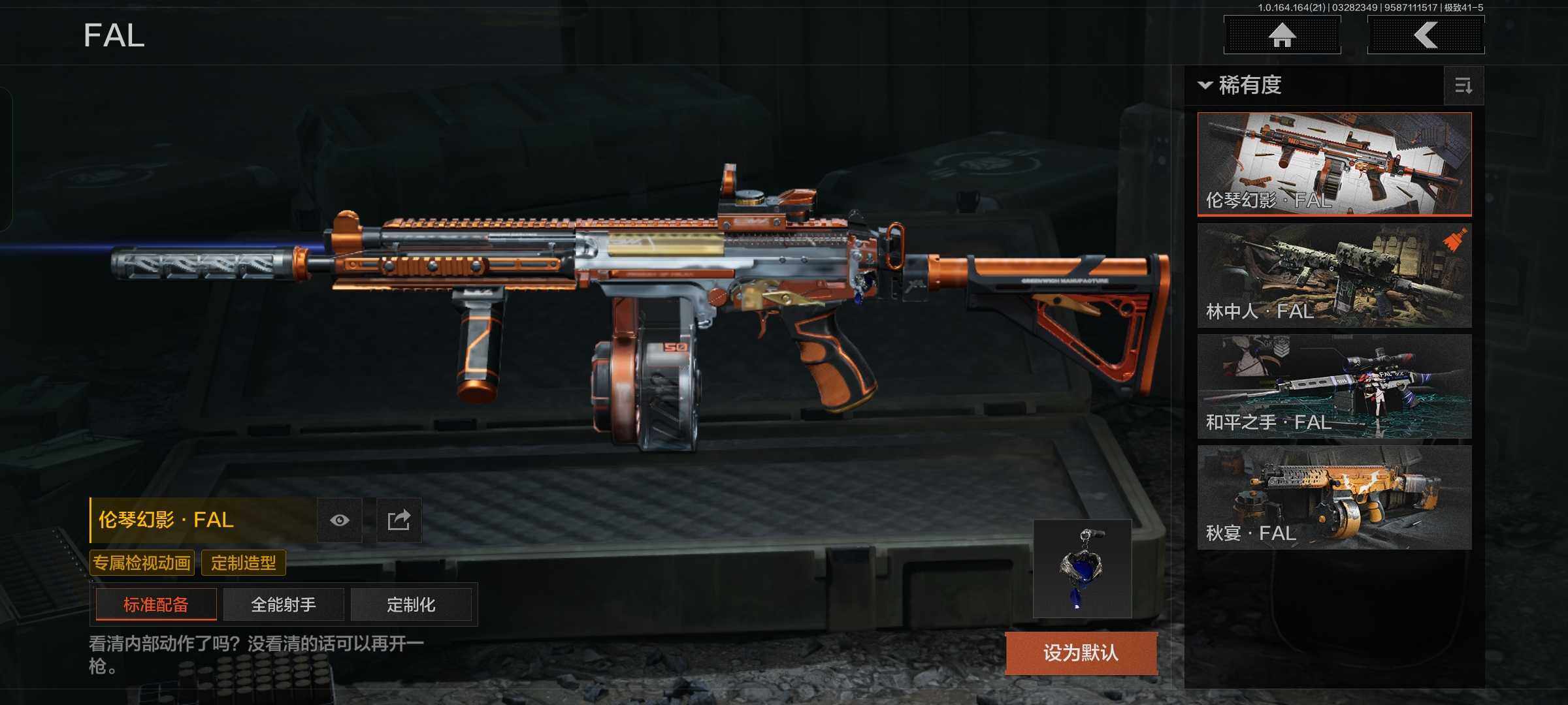【金色枪皮】:林中人FAL,伦琴幻影FAL,镀火熔金H416,赤帽要塞AR57,战术大师AEK,旗帜AEK,战术大师AN94,利齿风暴MPX,骑士之剑VSS,冰河碎影MK14,棱光裂变QBU191,近卫荣誉RPK16