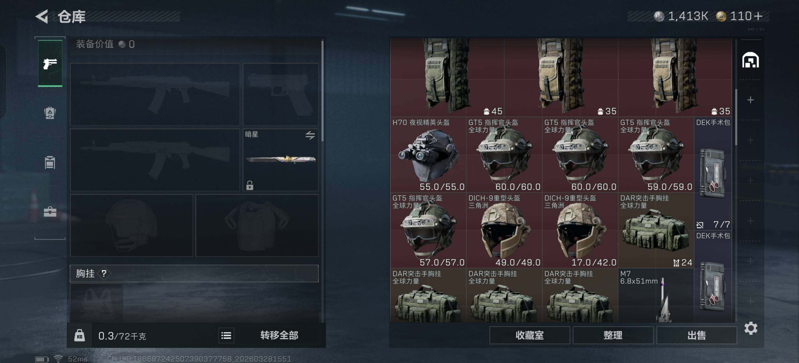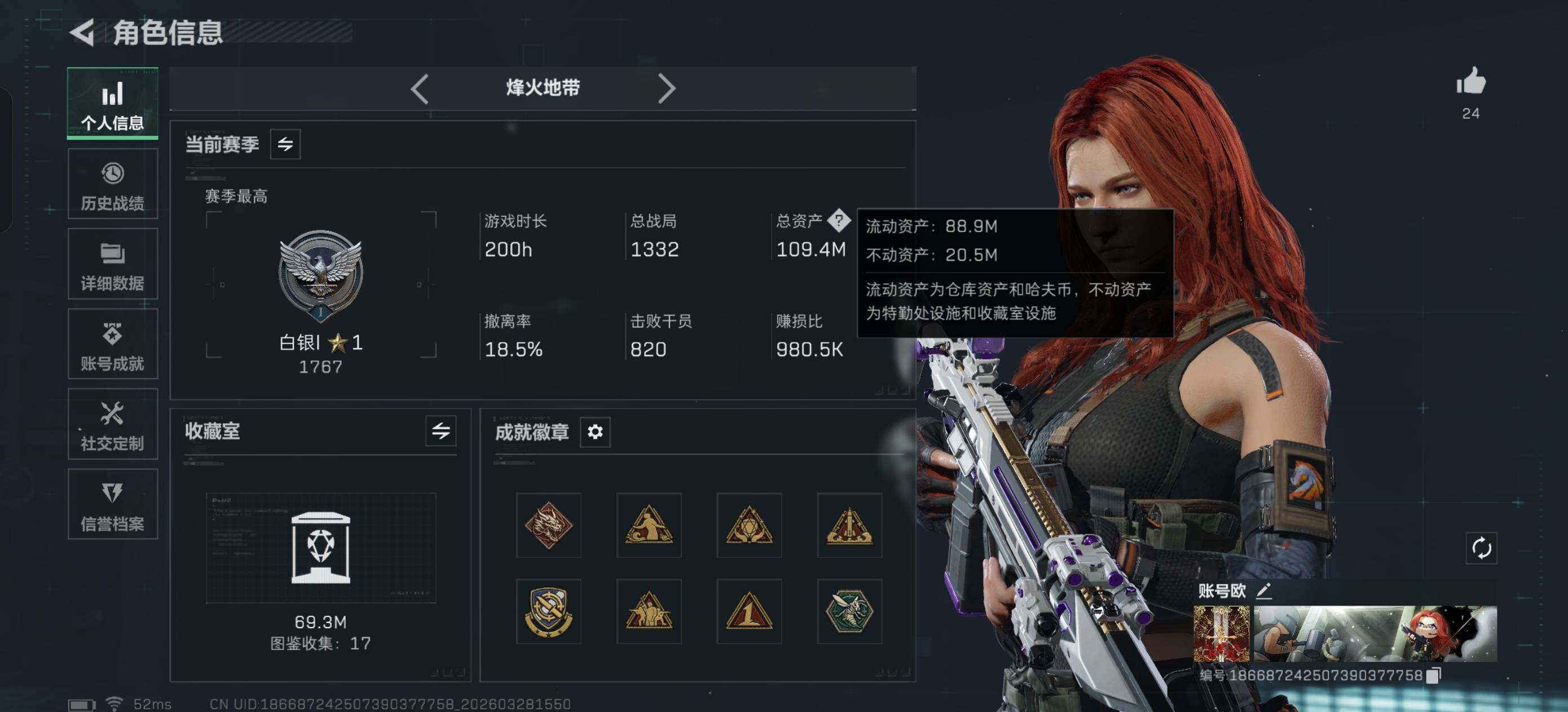 109m总资产-1413k哈夫币-60烽火等级-白银-22战场等级-军士长