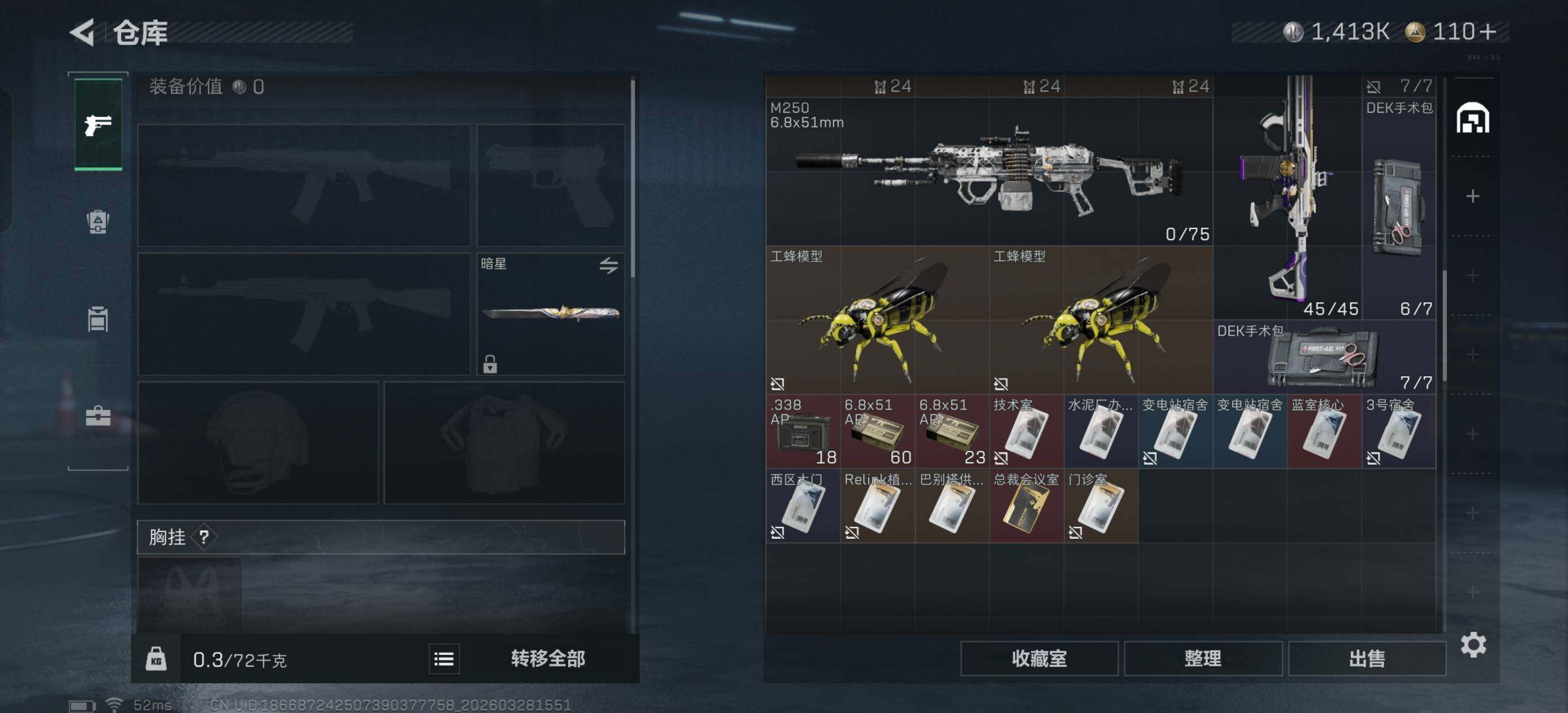 109m总资产-1413k哈夫币-60烽火等级-白银-22战场等级-军士长【