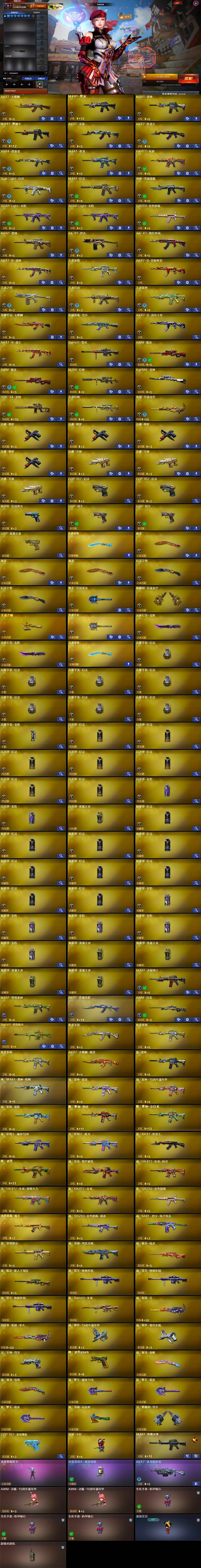 【热门武器】:QBZ03-金色蔷薇,Scar Light-白虎,HK417-朱雀,M4A1-青龙,M200-幻神,荣耀世冠-火麒麟,Kar98K-星神,M4A1-黑骑士,雷神-小红,COP 357-幻灵*2,沙鹰-修罗*4,COP 357-极地霜雄