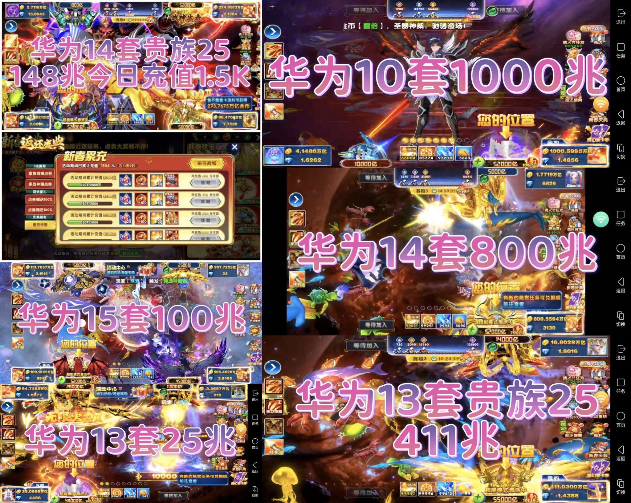 华为13套贵族25 特价出1400兆金币 来快枪手不拖号的,感谢支持!