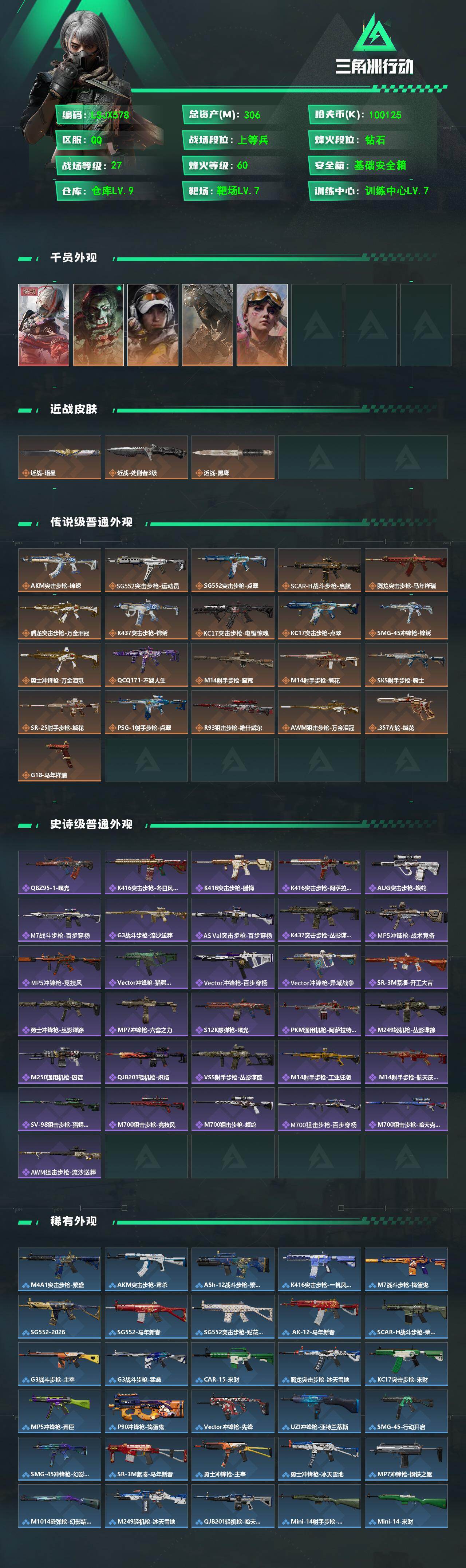 【特价出售/店主推荐】306m总资产-100125k哈夫币-60烽火等级-钻石-27战场等级-上等兵