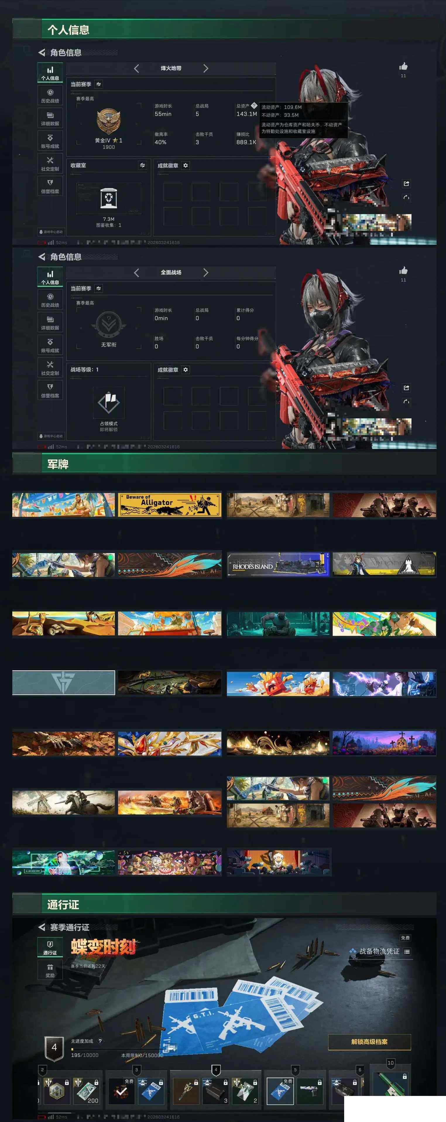 【sjs8939】水墨云图+维什戴尔+总资产145.6m+6400w现金可二次 纯绿无处罚 体力负重双6 精品账号 烽火地带段位: 黄金 全面战场段位: 无段位 总资产: 145000000 哈夫币: 64791000 sjs8939 干员外观: 骇爪-水墨云图,骇爪-维什戴尔 传说武器皮肤: SCAR-H战斗步枪-水墨云图,M4A1突击步枪-阿米娅,CAR-15突击步枪-阿米娅,AWM狙击步枪-捞点薯条,腾龙突击步枪-捞点薯条,93R-捞点薯条,AK-12突击步枪-特斯拉线圈,SR-3M紧凑突
