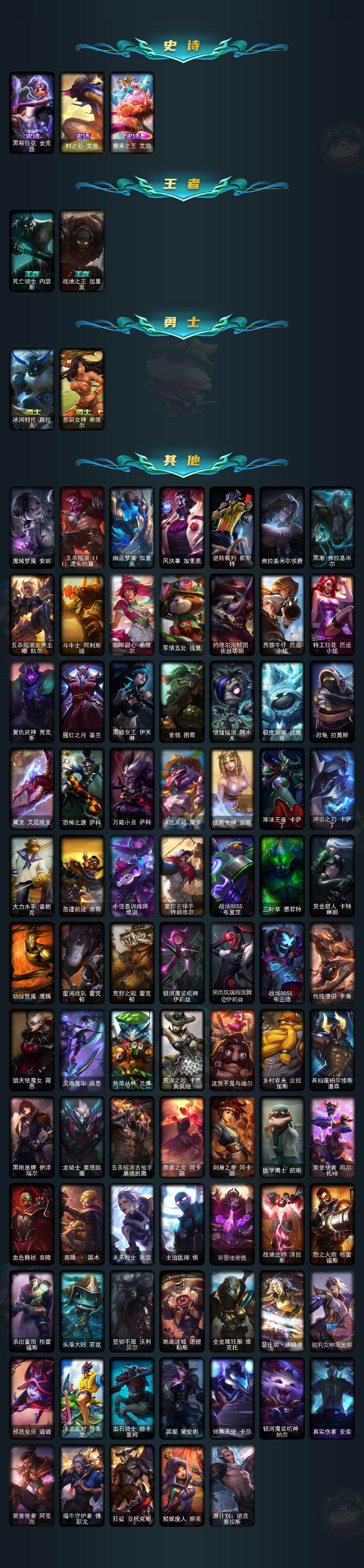 未定级段位-171英雄-171皮肤-70炫彩-0终极-3神话-23限定-14传说-45史诗