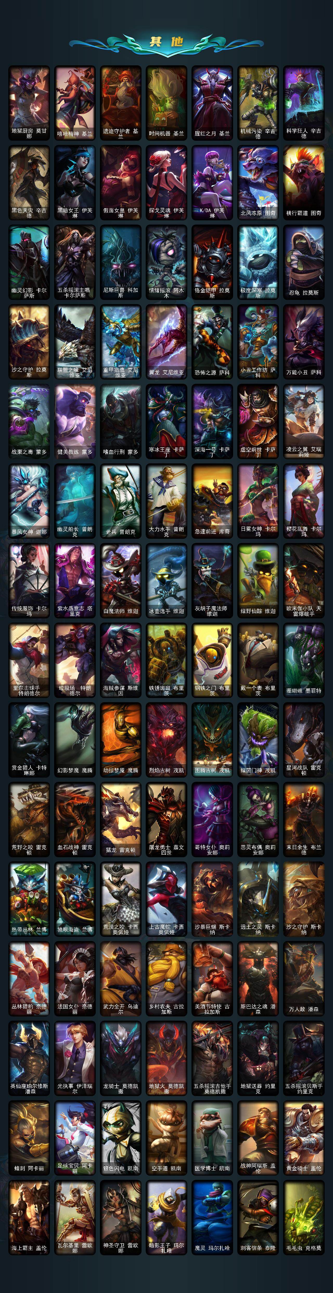 【年限皮肤】:替父从军花木兰,神龙烈焰金克丝,美猴王孙悟空,紫金罗刹莫甘娜,玉净夜叉凯特琳,烈焰美人薇恩