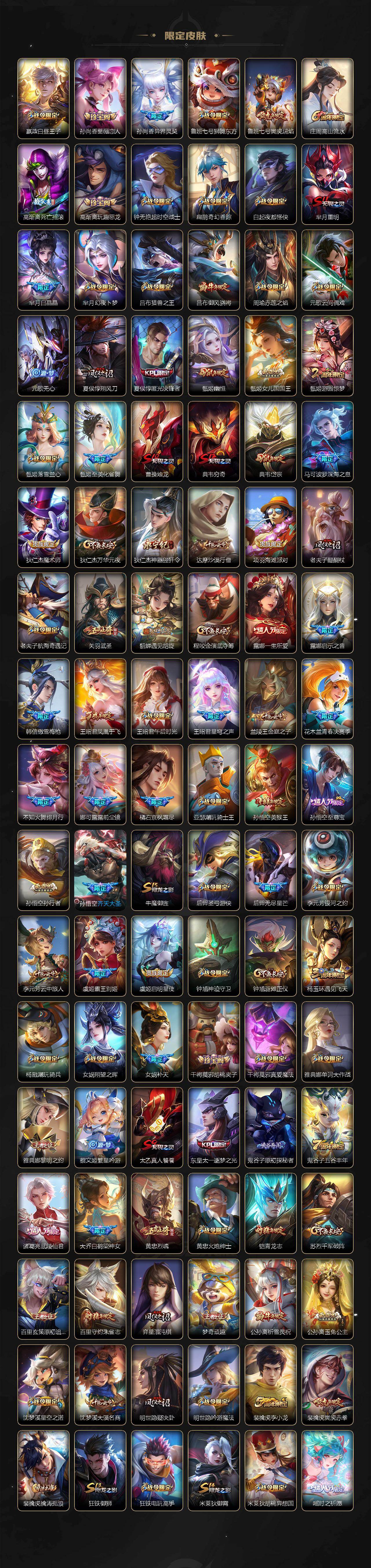 【英雄全皮】:刘禅全皮,露娜全皮,孙权全皮,娜可露露全皮,橘右京全皮,东皇太一全皮,鬼谷子全皮,狂铁全皮,盾山全皮,大司命全皮,敖隐全皮,金蝉全皮,戈娅全皮,空空儿全皮,影全皮,少司缘全皮