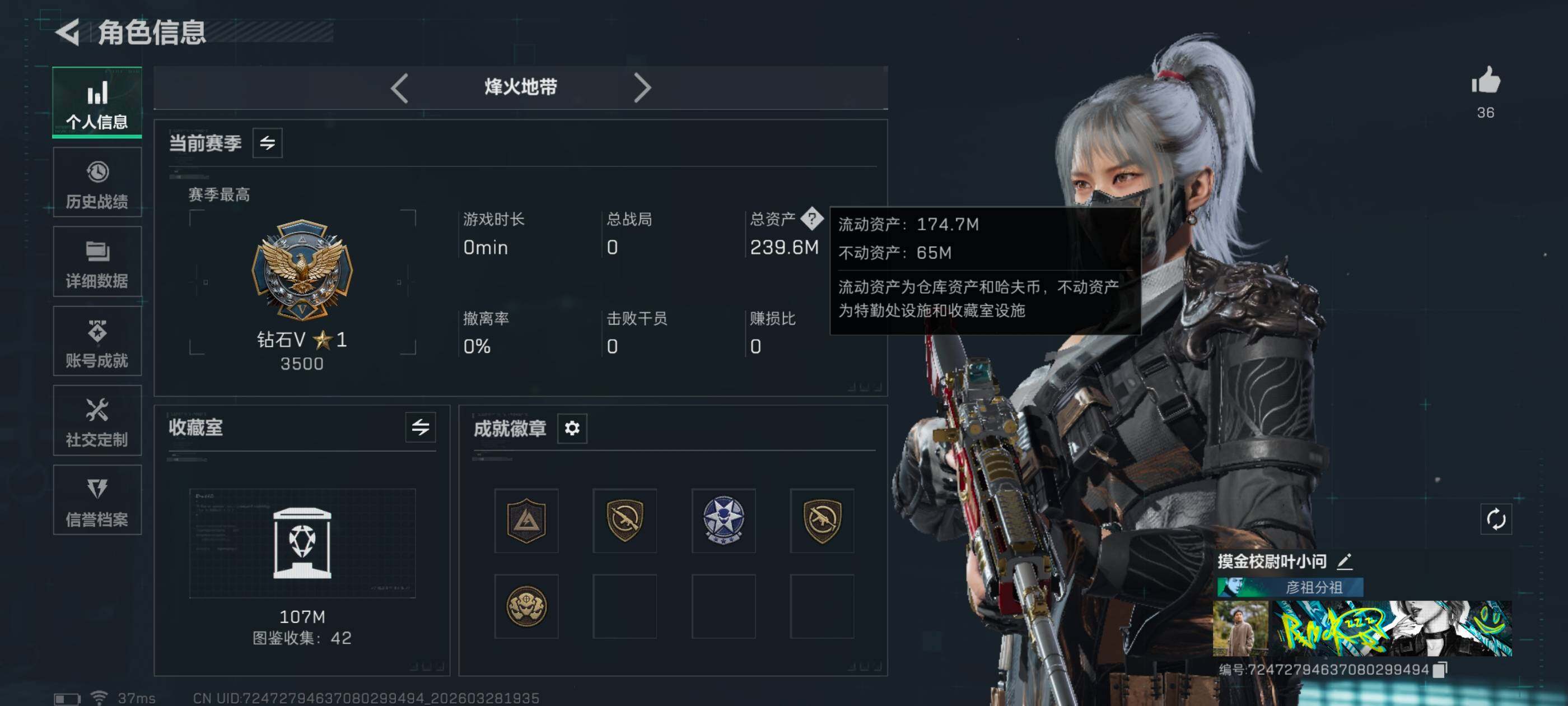 239m总资产-26108k哈夫币-60烽火等级-钻石-42战场等级-列兵
