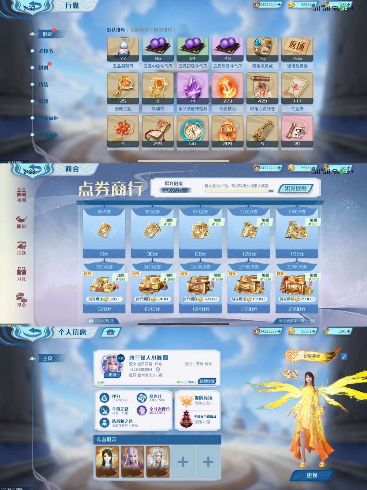氪金13W,原战战力1.38亿,赛季末1.68亿,互通官服