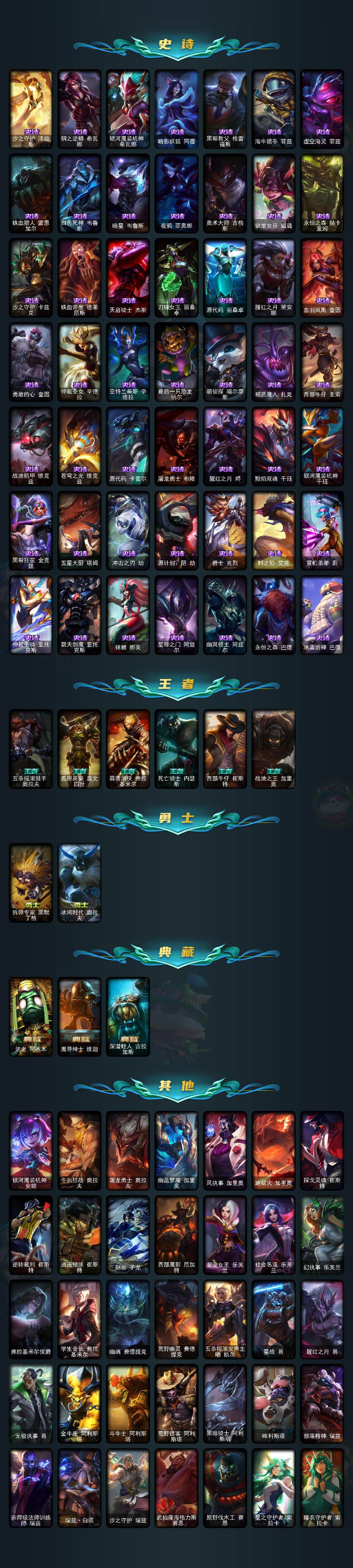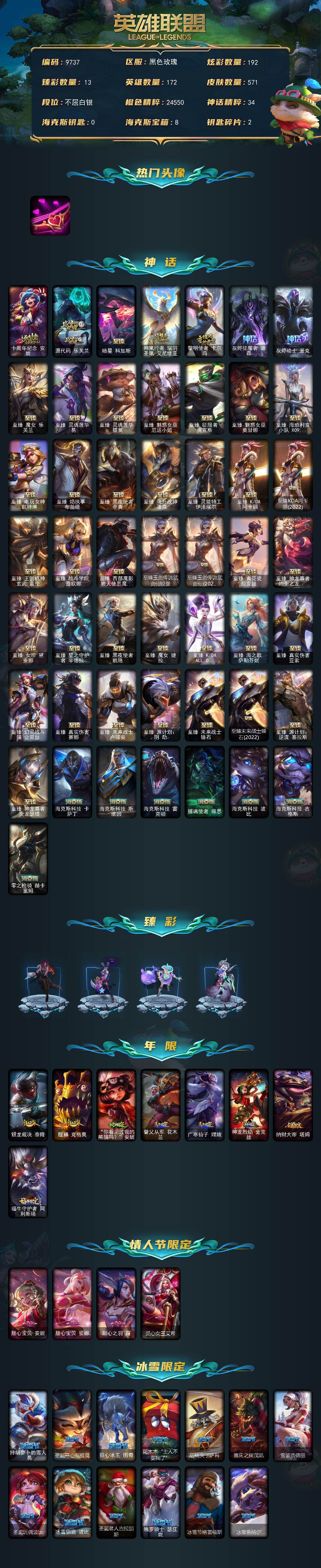 白银段位-172英雄-571皮肤-192炫彩-2终极-50神话-96限定-50传说-126史诗
