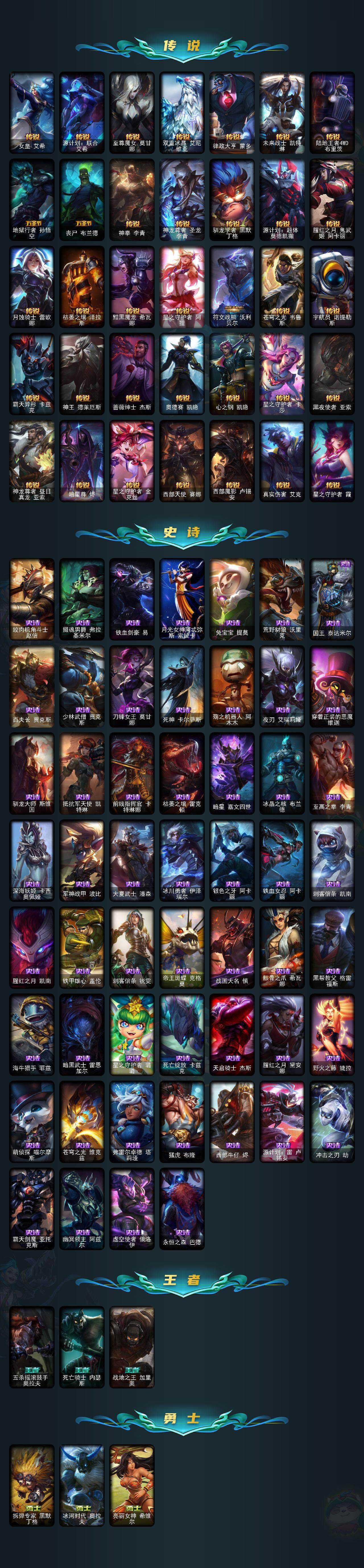 黄金段位-172英雄-334皮肤-102炫彩-1终极-18神话-48限定-42传说-