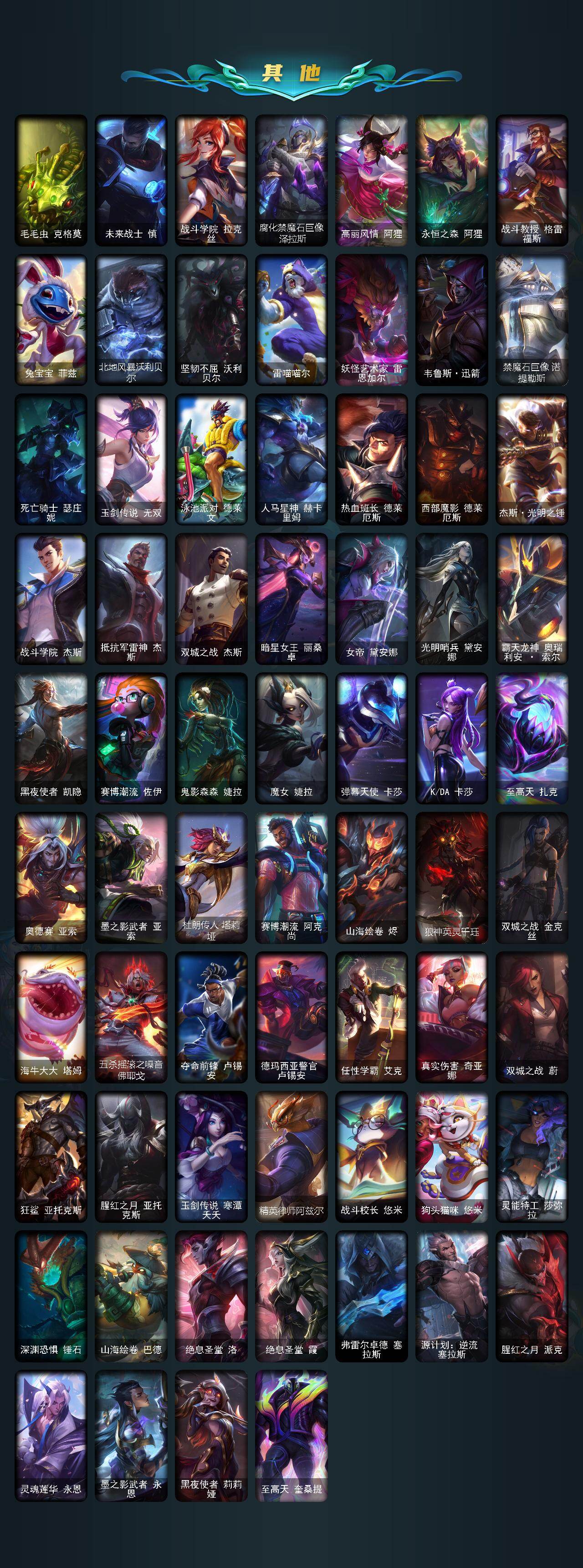 【海克斯皮肤】:海克斯科技阿木木,海克斯科技卡萨丁,海克斯科技魔腾,海克斯科技嘉文四世,海克斯科技吉格斯,零之枪骑赫卡里姆,恐惧新星德莱厄斯