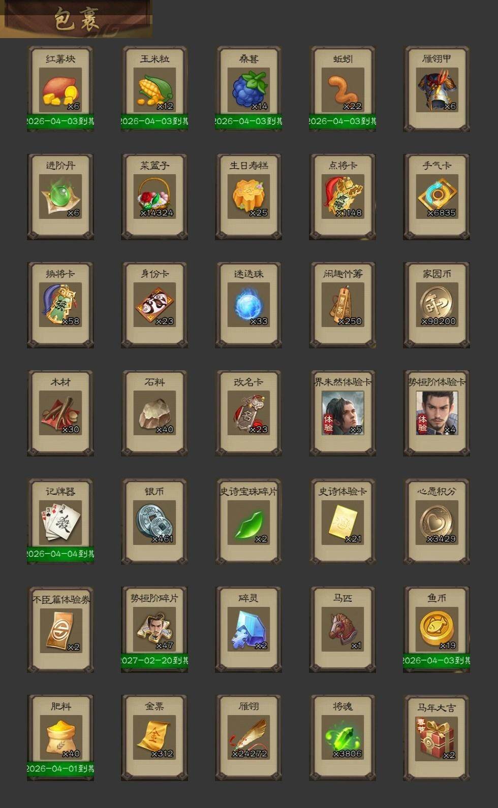官阶:大将军;VIP等级:VIP12;史诗武将数量:56;动态皮肤数量:40;武将总数:401;史诗宝珠数量:0;将魂数量:3806;神将:10;魏国史诗武将:29;蜀国史诗武将:11;吴国史诗武将:5;群史诗武将:19