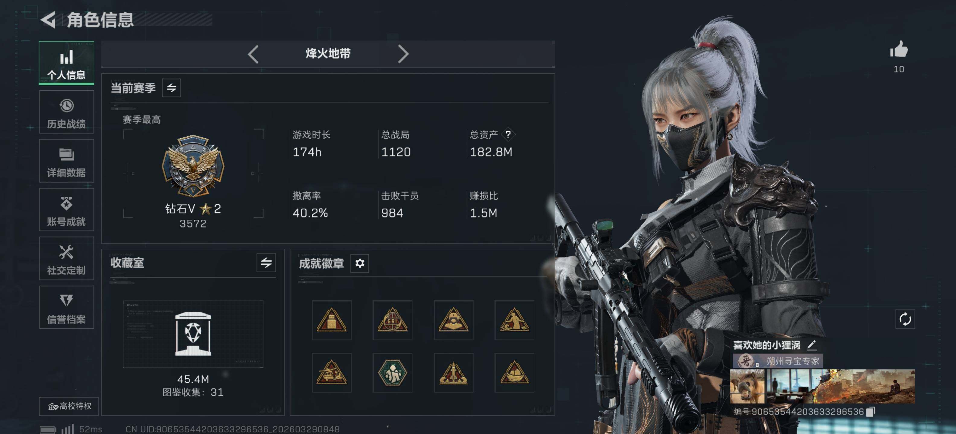 182m总资产-57768k哈夫币-60烽火等级-钻石-28战场等级-上等兵