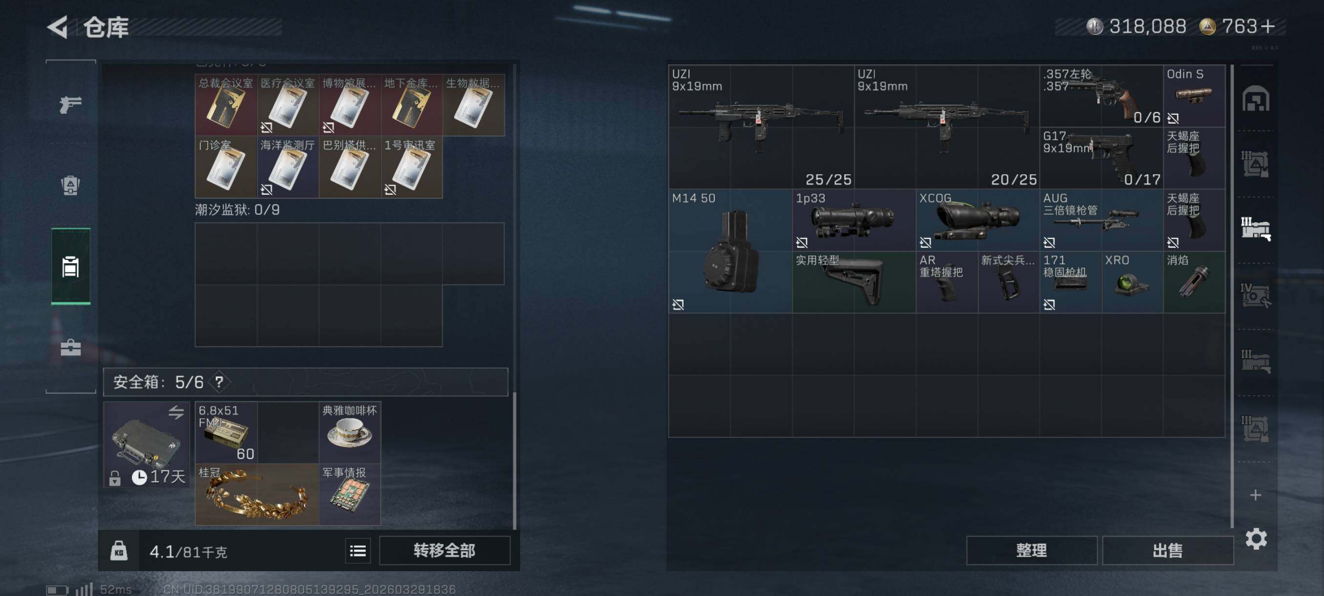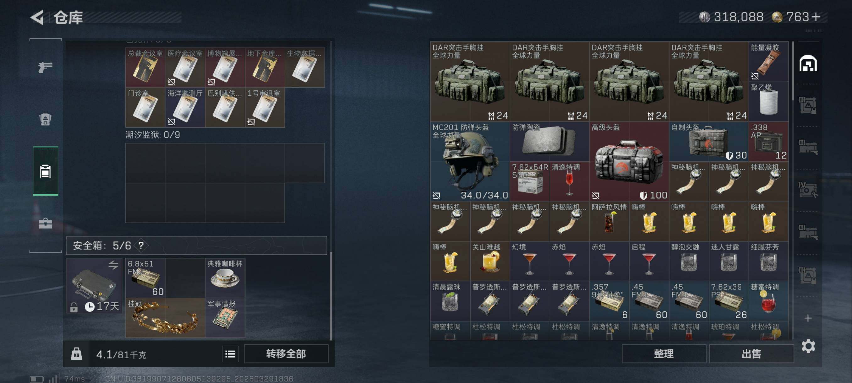{特价出售}等级:60总资产:36.5M 纯币 318088 红皮:蚀金玫瑰 天际线 荒原猎手 刀皮: 信条 特勤处:仓库,7训练,6靶场5