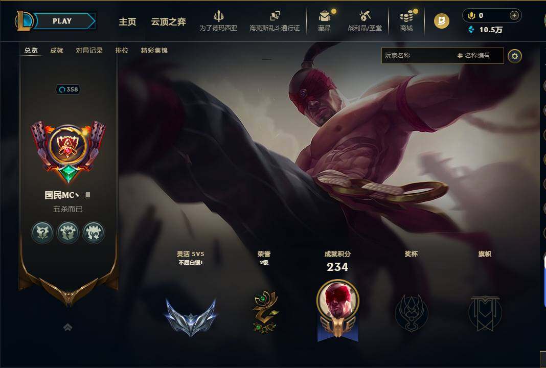 白银段位-172英雄-286皮肤-58炫彩-0终极-4神话-47限定-19传说-69
