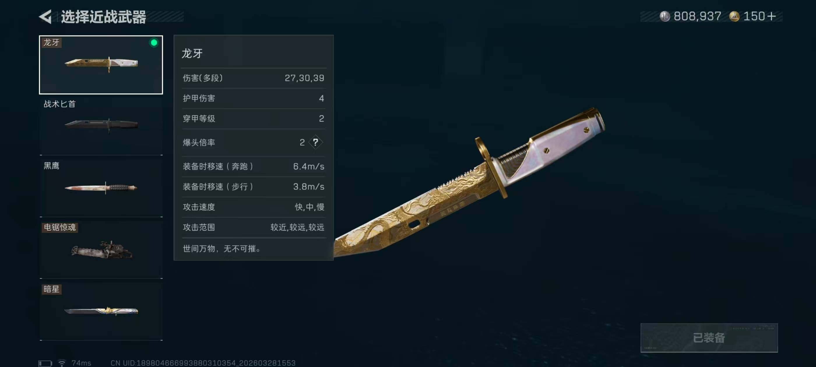 【近战皮肤】:近战-暗星,近战-龙牙,近战-电锯惊魂,近战-黑鹰