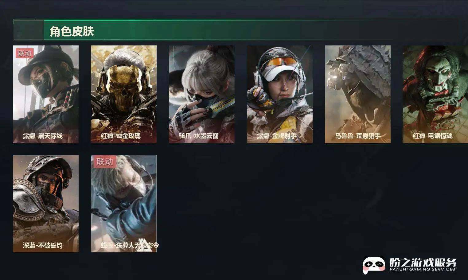 【干员外观】:红狼-蚀金玫瑰,骇爪-水墨云图,露娜-黑·天际线,蜂医-送葬人·无题密令,深蓝-不破誓约,红狼-电锯惊魂,露娜-金牌射手,乌鲁鲁-荒原猎手,蛊-不羁人生