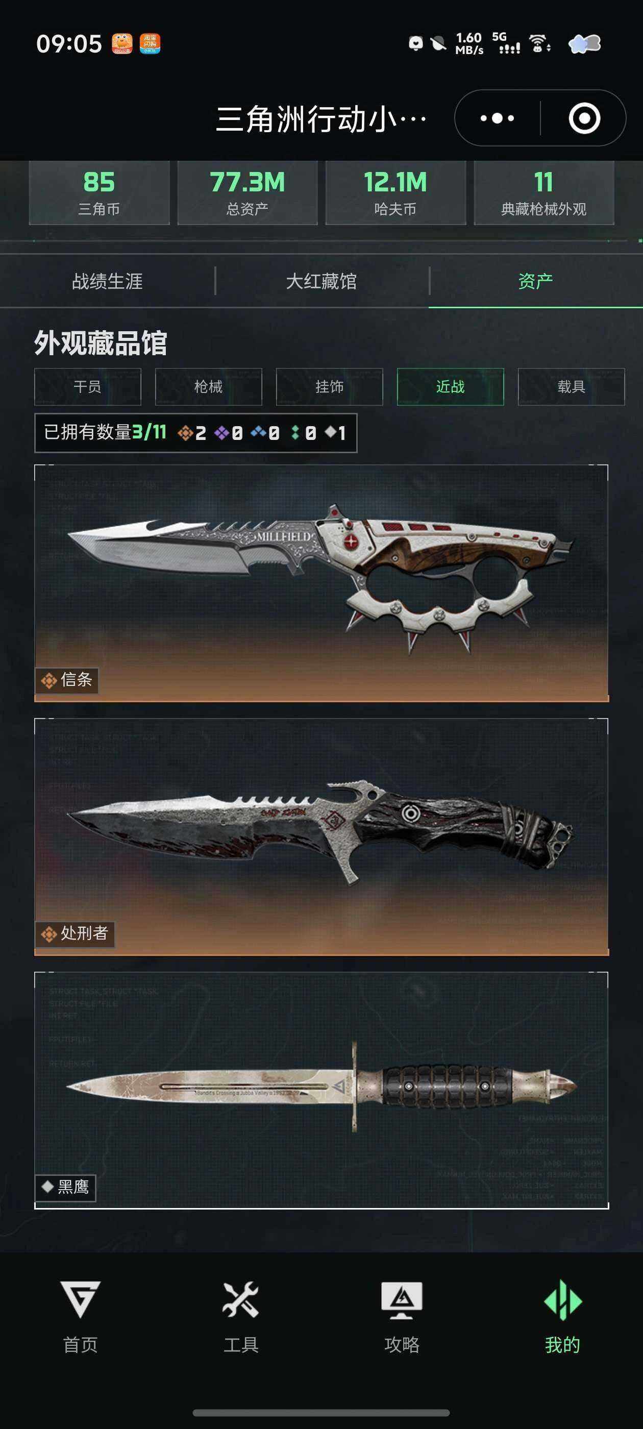 【近战皮肤】:近战-信条,近战-处刑者1级,近战-黑鹰