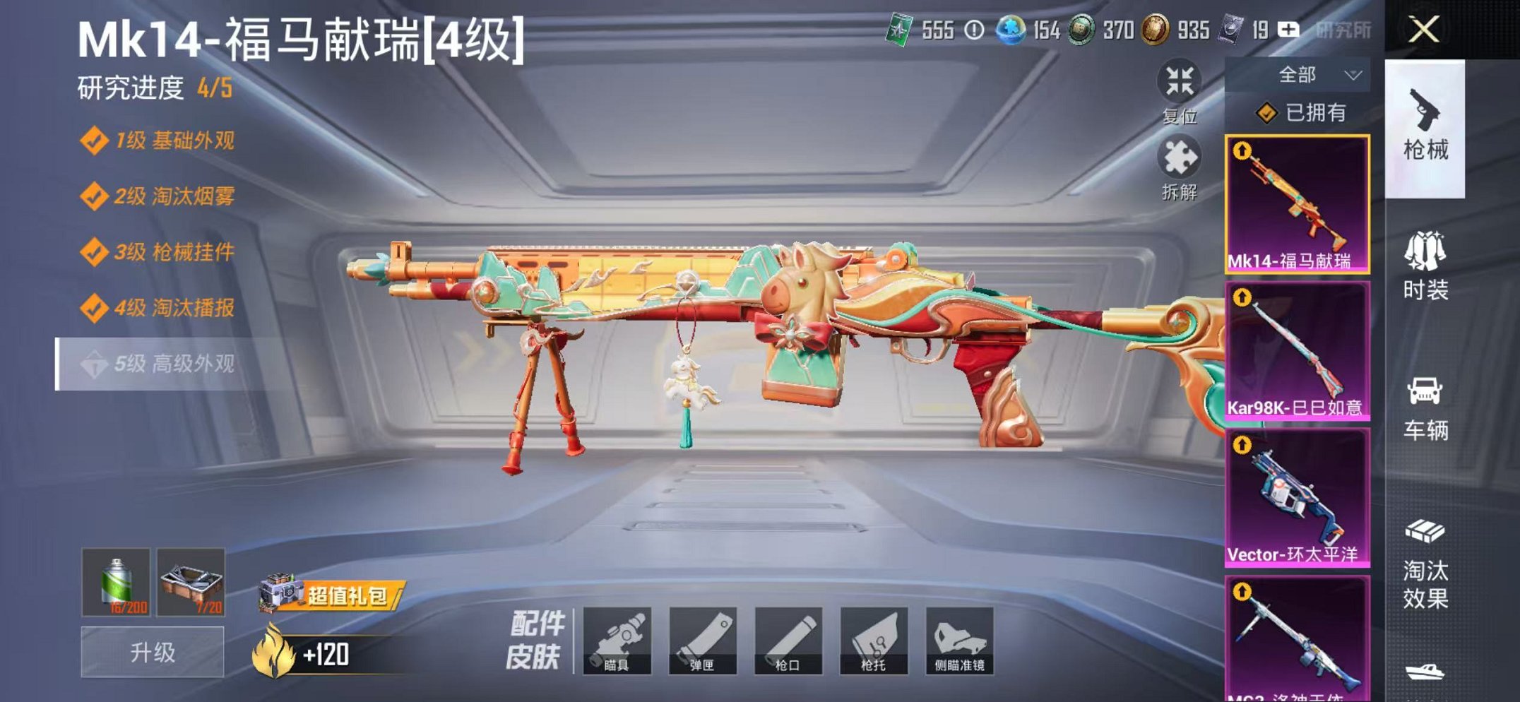 可二次【8粉装5特效枪1载具】 苹果V区-63744热力值-4印记-167套装-
