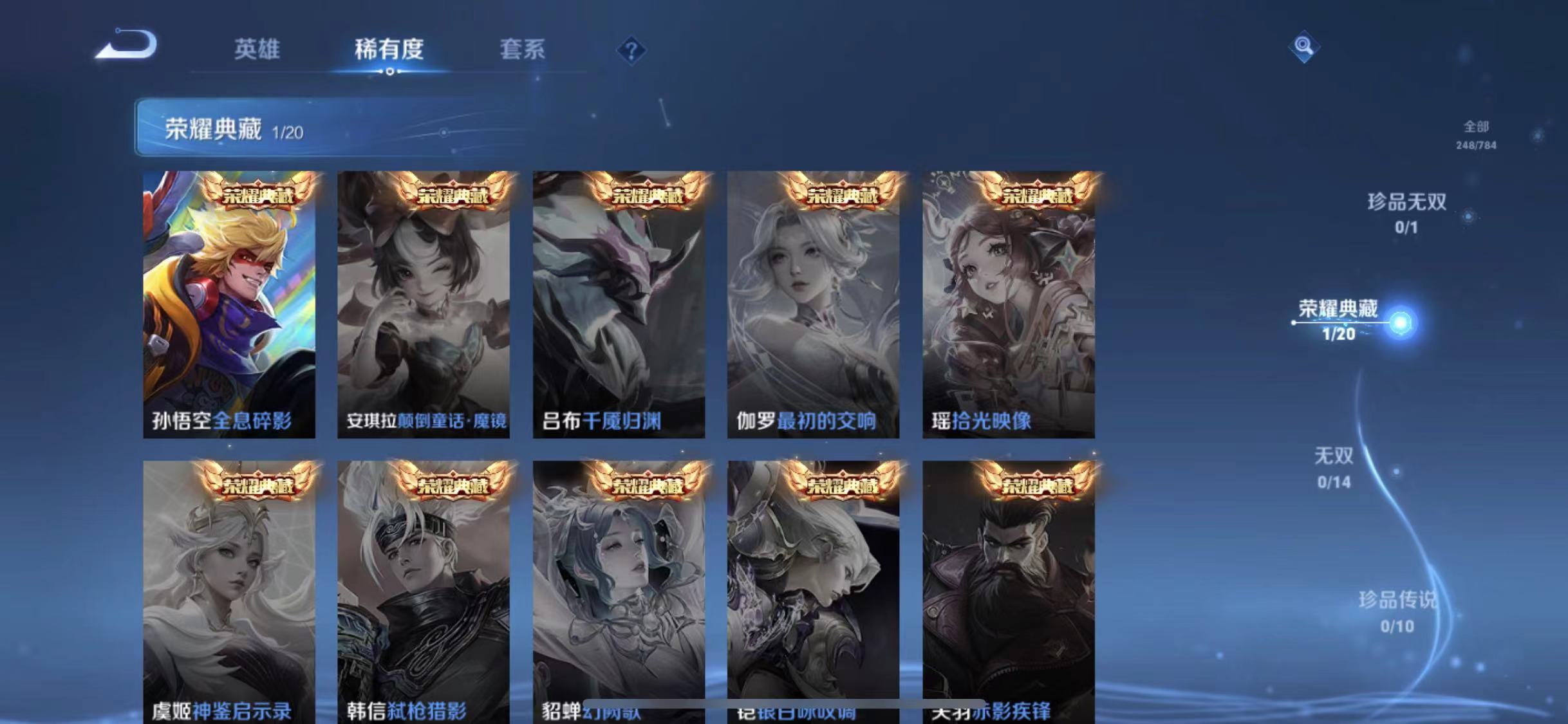 【248皮肤1水晶13传说】苹果QQ-127英雄-248皮肤【1水晶】 全息碎影【传说皮肤】云霓雀翎 电玩·雷克斯 画中仙 齐天大圣 诗剑行 绯月行 久胜战神 炽阳神光 绛天战甲 云鹰飞将 启明星使 淬星耀世 音你心动【史诗皮肤】冰锋战神 飞衡 大圣娶亲 至尊宝 奇幻香踪 匿光破解者 山海·玄木吟 舞动绿茵 幽灵船长 繁星吟游 拒霜思 功夫厨神 魅力维加斯 魔术师 鹰眼统帅 岱