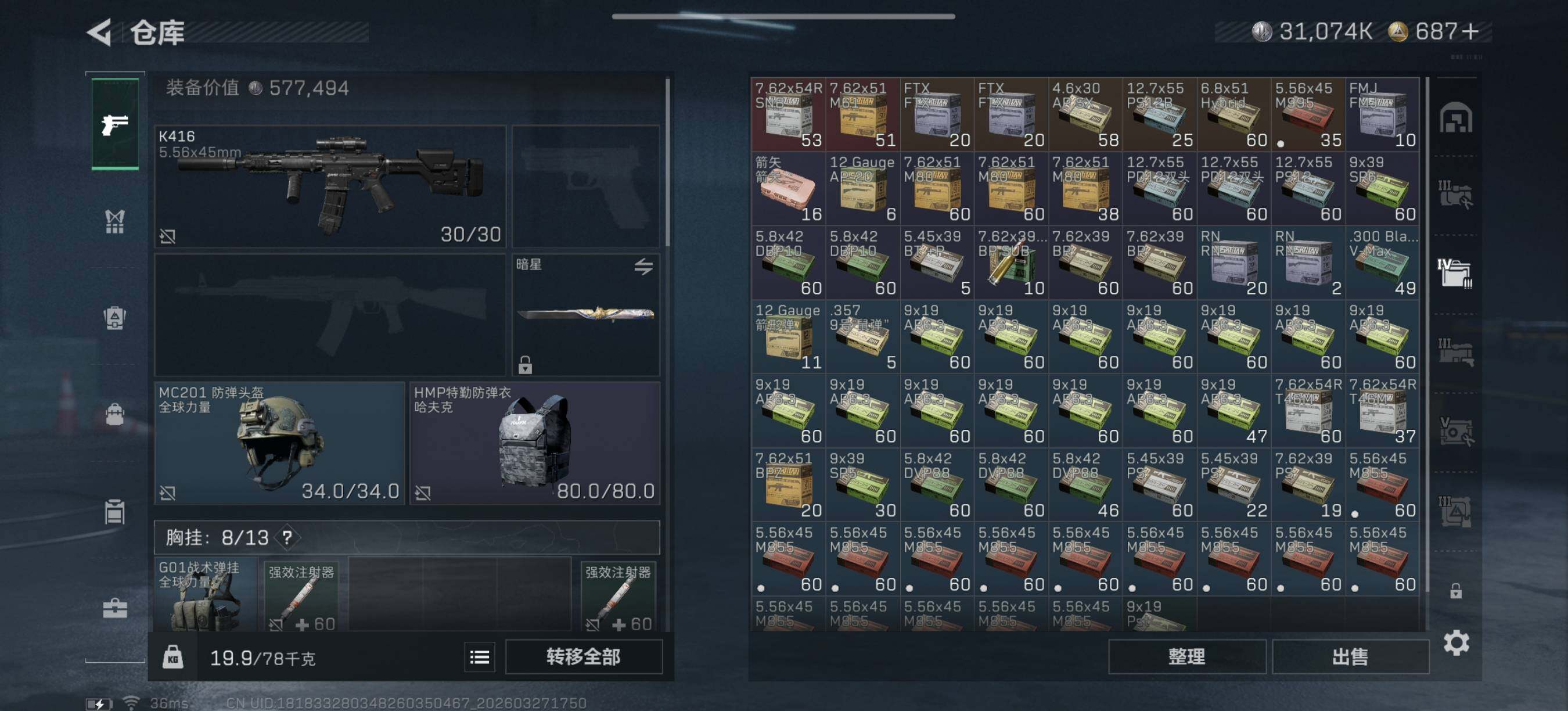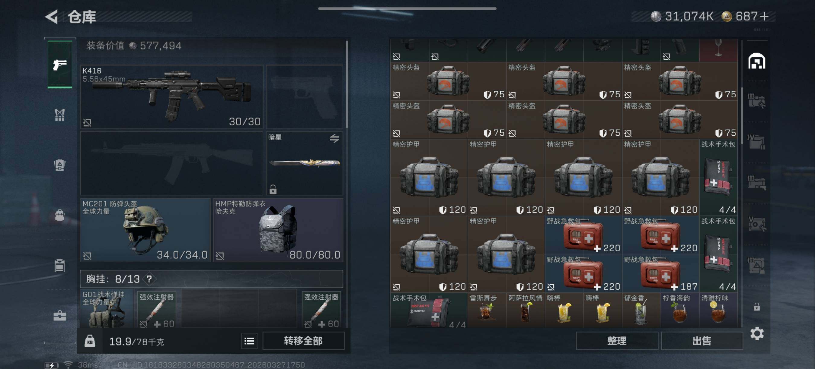 总资产(M):74M/哈夫币(K):31074K/传说枪皮数:35/全面战场等级:32_段位:列兵/烽火地带等级:60_段位:铂金/