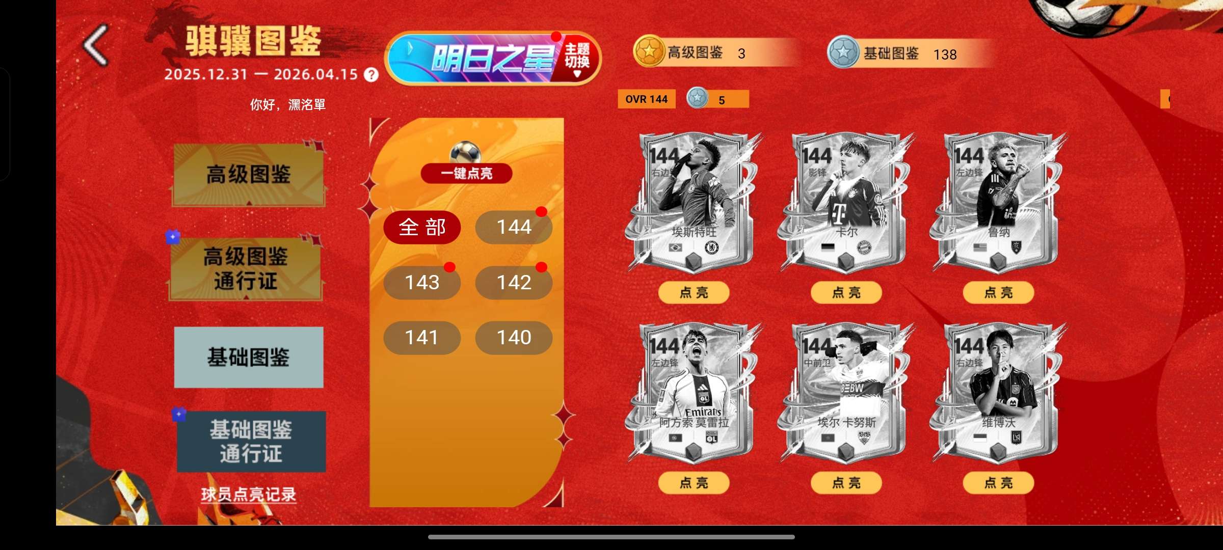 146全卡王,替补还有两张卡王145144系统神切赫图鉴努力一下能拿两个143