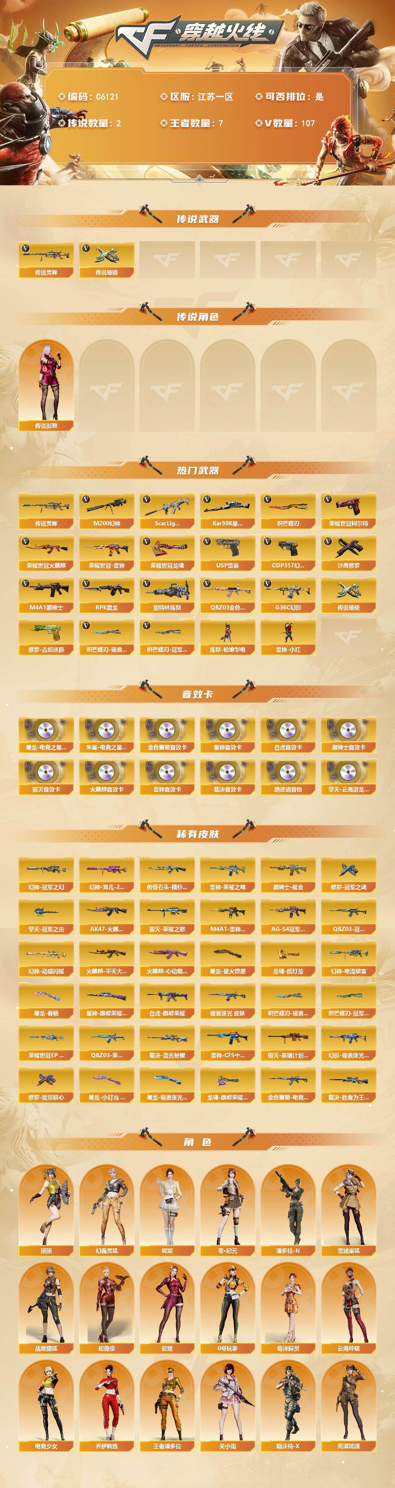 【C6121】江苏一区-107V-7王者武器数-0炫金武器数
