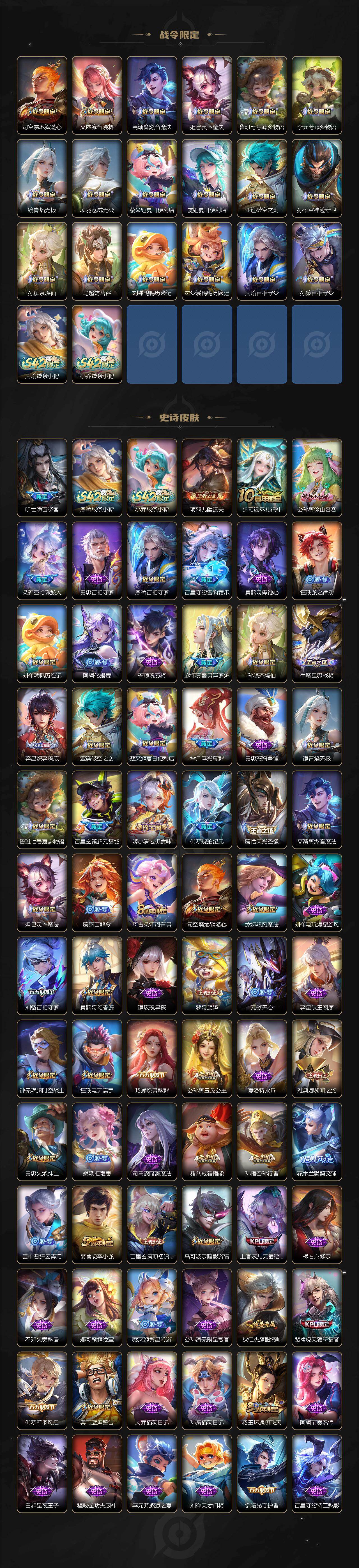 安卓Q-V8-最强王者段位-128英雄-340皮肤-2典藏皮肤-1无双-34传说-106史诗